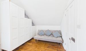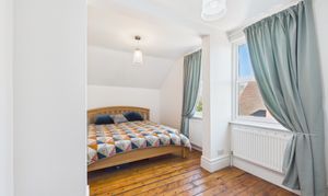 The second floor is dedicated to a spacious principal bedroom suite, offering a peaceful and private retreat. This generous room provides ample space for both sleeping and dressing, further complemented by a modern en-suite shower room featuring a large shower, vanity storage and a heated towel radiator.