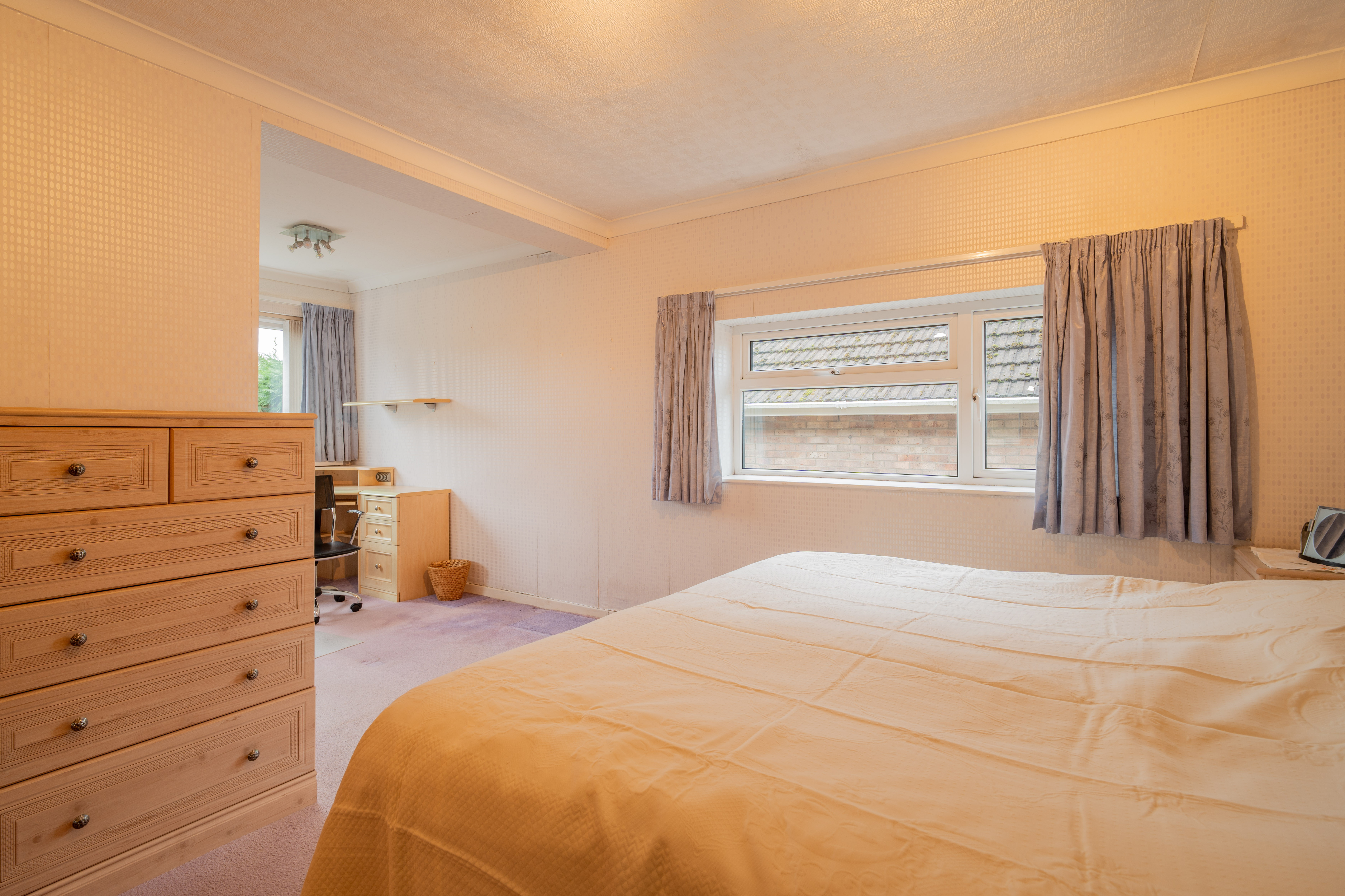 An entrance hall leads to a generous lounge with large windows that allow for plenty of natural light, while the kitchen is well-appointed and offers ample storage and workspace. Each of the three bedrooms is well-proportioned, with pleasant outlooks and flexibility for use as bedrooms or a home office. The bathroom is fitted with a modern suite with a new wall-mounted shower. The property also presents significant potential for further development, as the large boarded loft space could be converted (subject to the necessary planning permissions) to create up to two additional bedrooms, thereby increasing the living space and adding value. The bungalow is conveniently located close to local amenities, with a bus stop nearby providing excellent transport links, and is within easy reach of schools, shops, and leisure facilities. Ample off-road parking is available, making it ideal for households with multiple vehicles or visitors. A new gas-fired combination boiler (2024) has been installed.