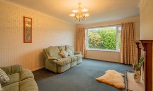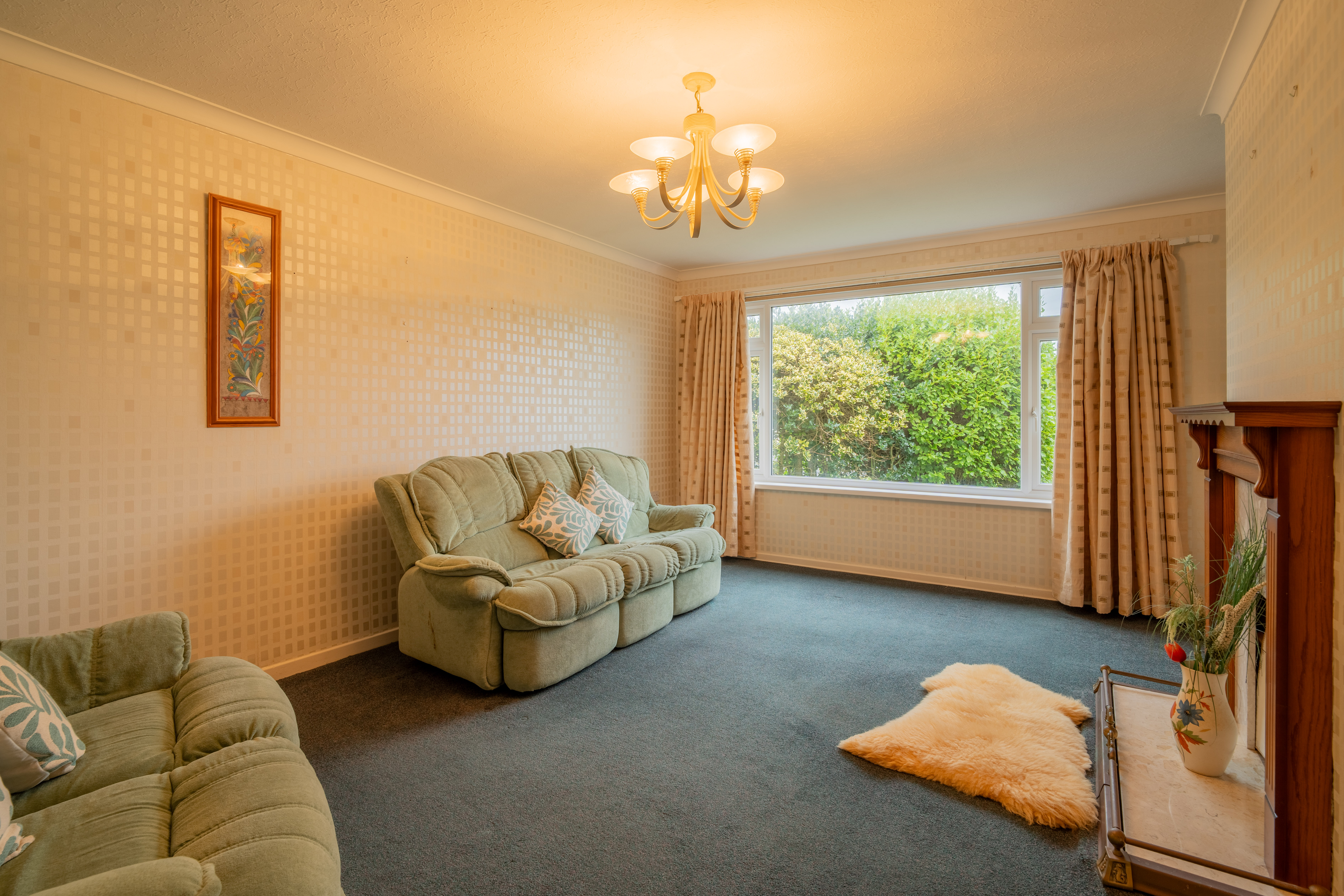 The front-aspect sitting room is a particularly spacious and bright reception area, enhanced by a large UPVC double-glazed picture window that floods the room with natural light. A fireplace with hearth provides an attractive focal point, while the coved ceiling, inset spotlighting and central light fitting add to the room’s sense of character and comfort. A radiator offers additional warmth, and the generous proportions allow for a variety of seating arrangements and layout options, making this an excellent principal living space.