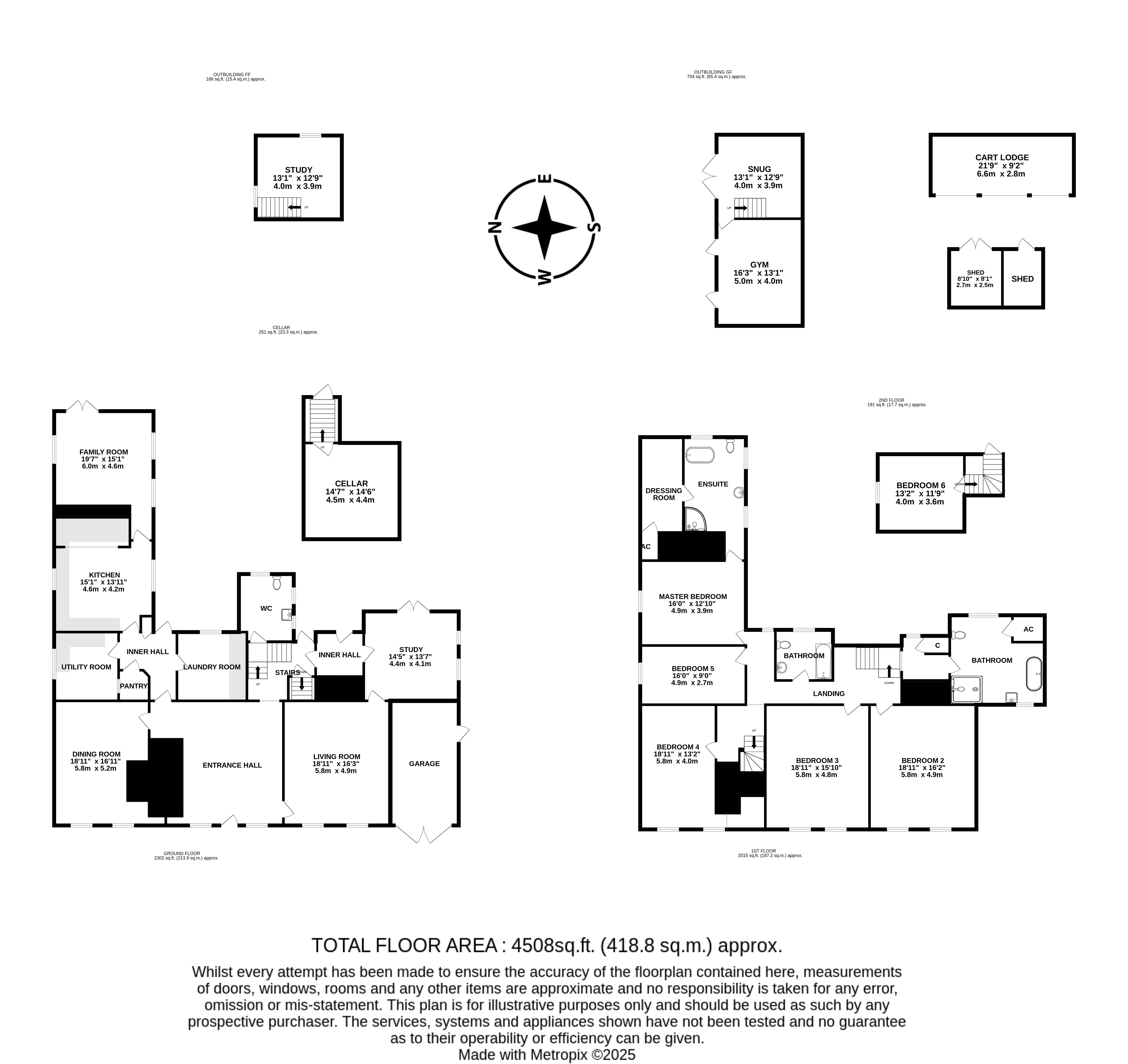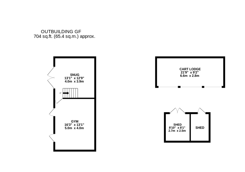 - Substantial detached weatherboarded outbuilding offering a snug, gym, storage and a mezzanine-level studio or home office
