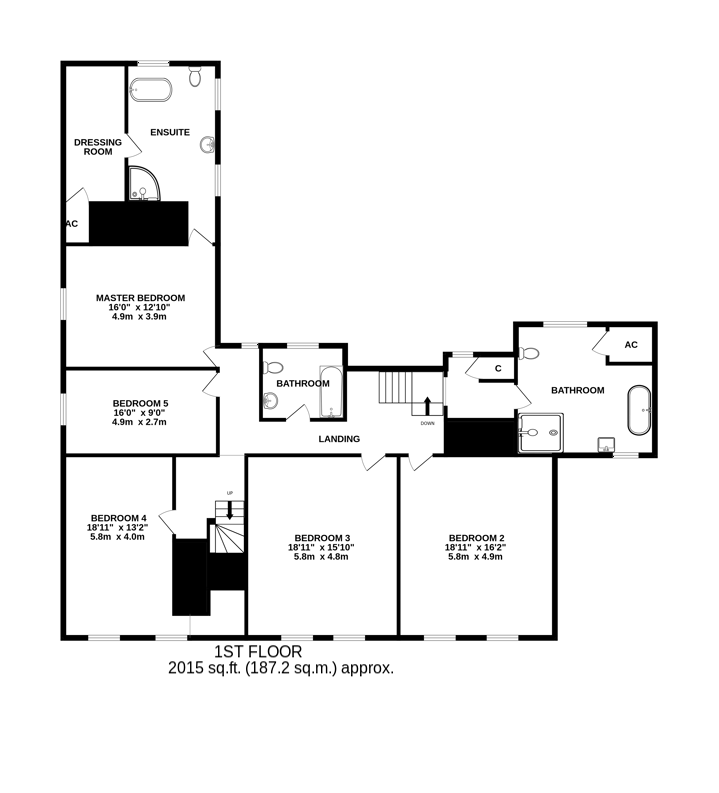 - Six bedrooms, including five on the first floor and a charming second-floor bedroom beneath exposed roof timbers