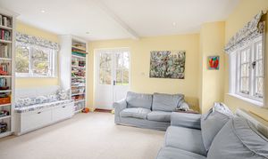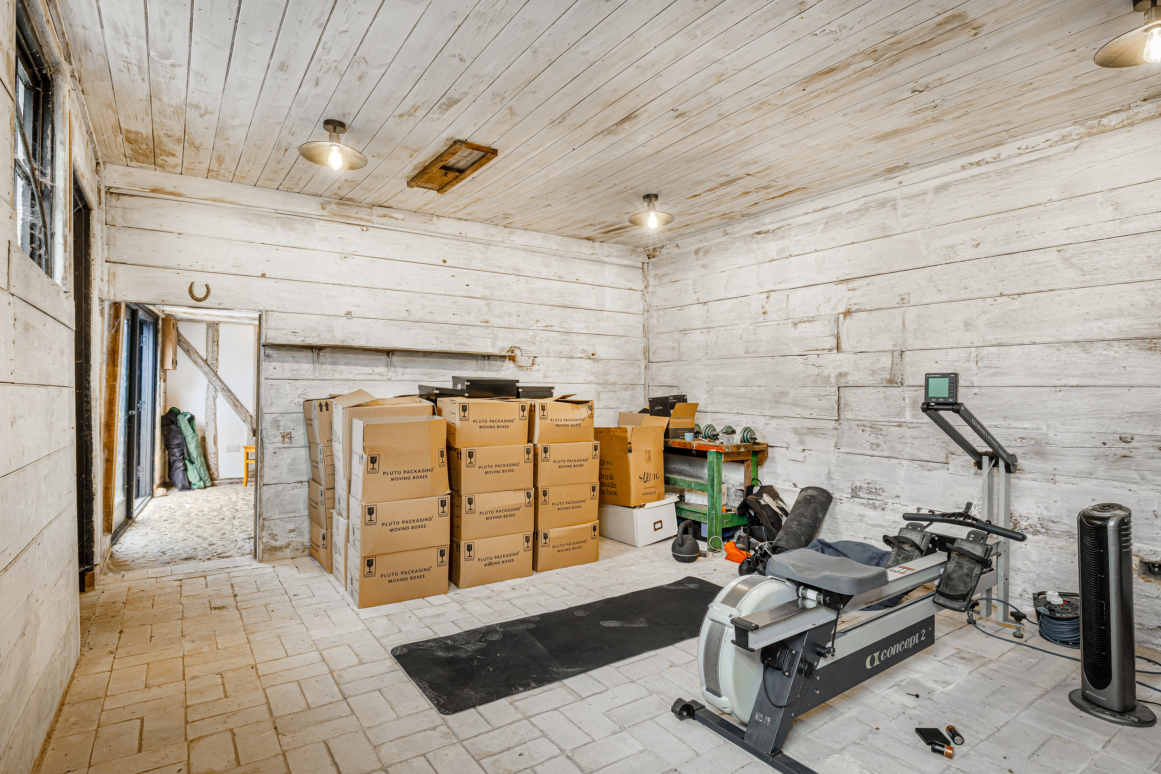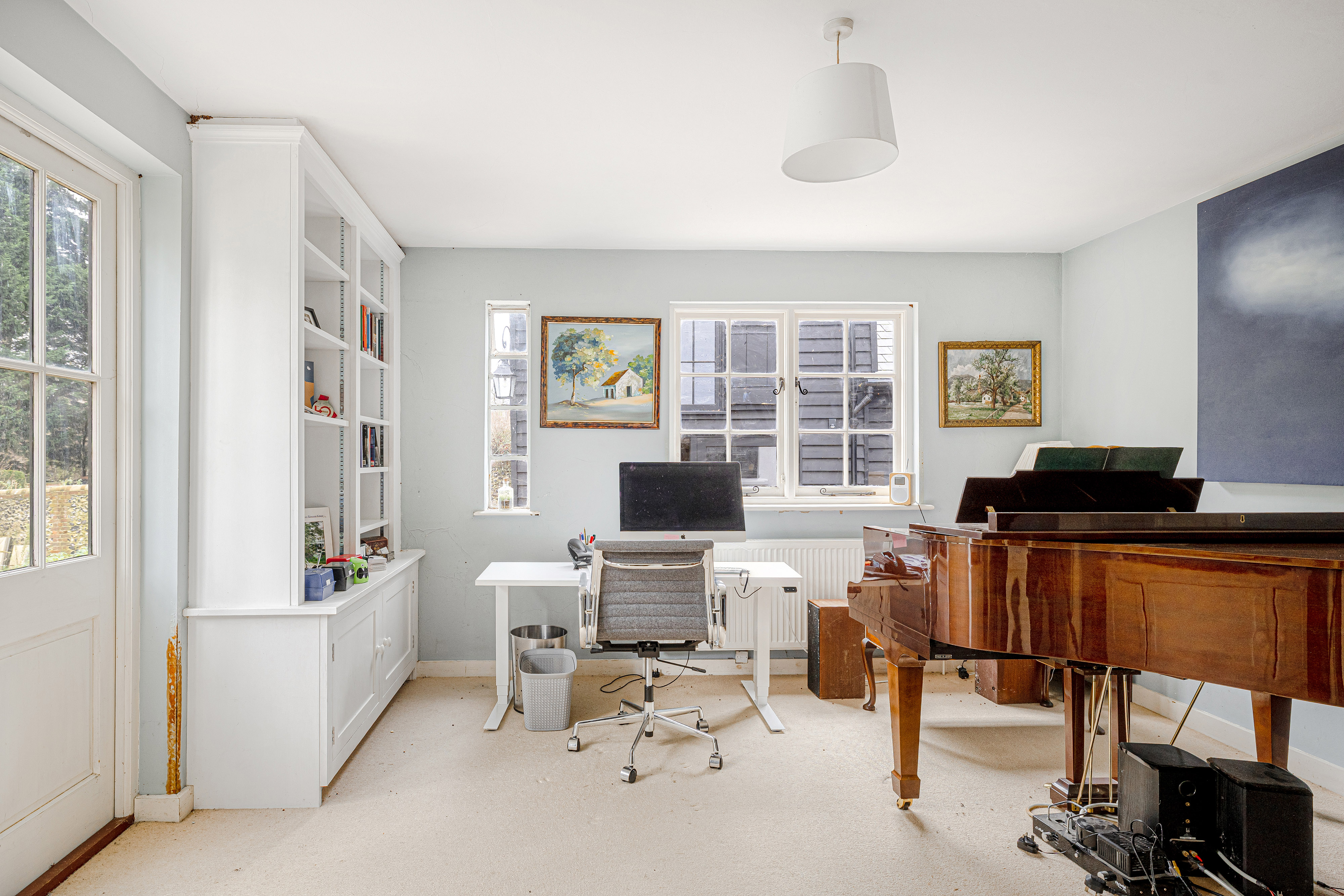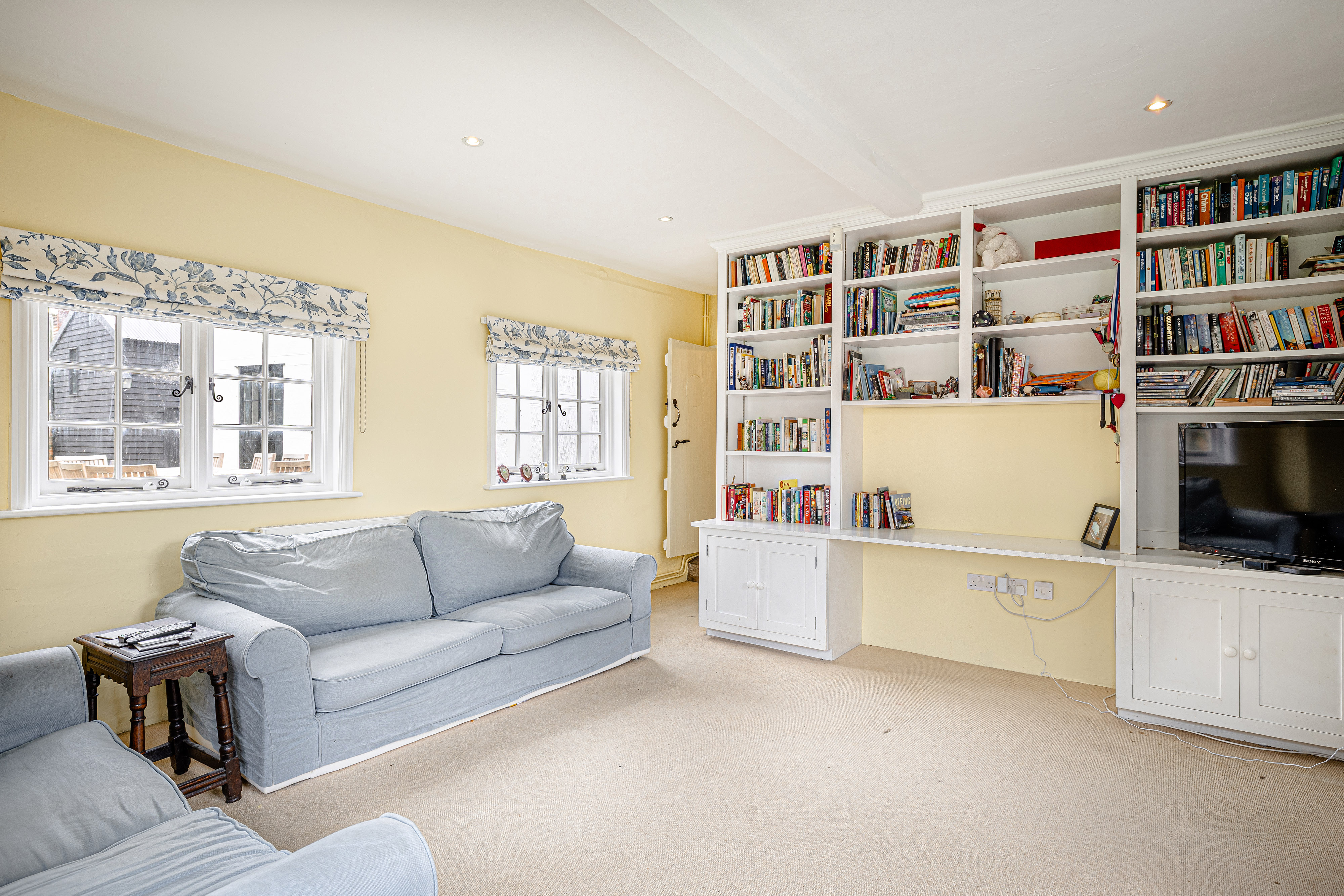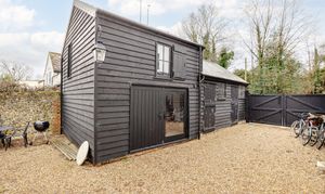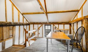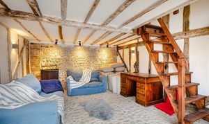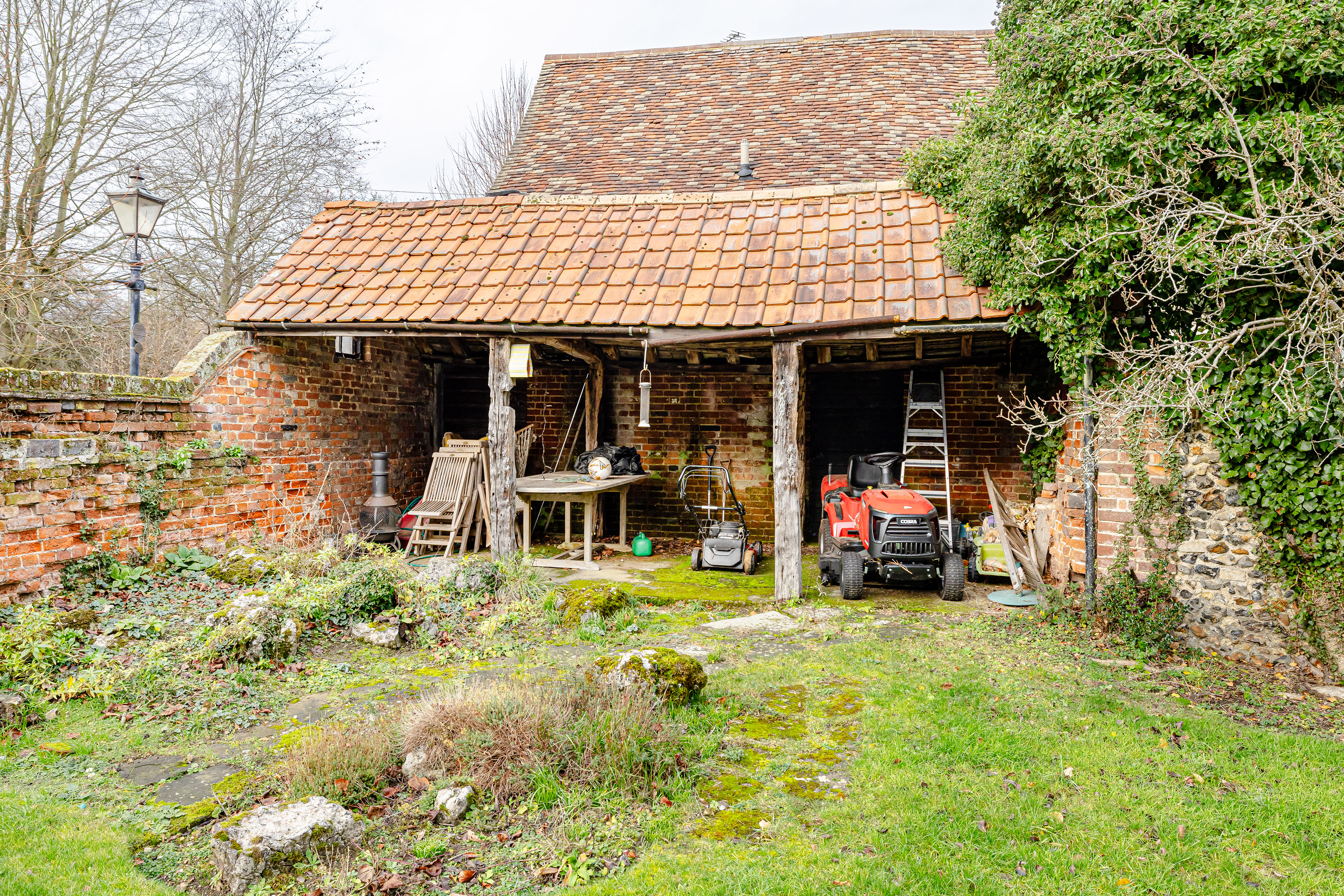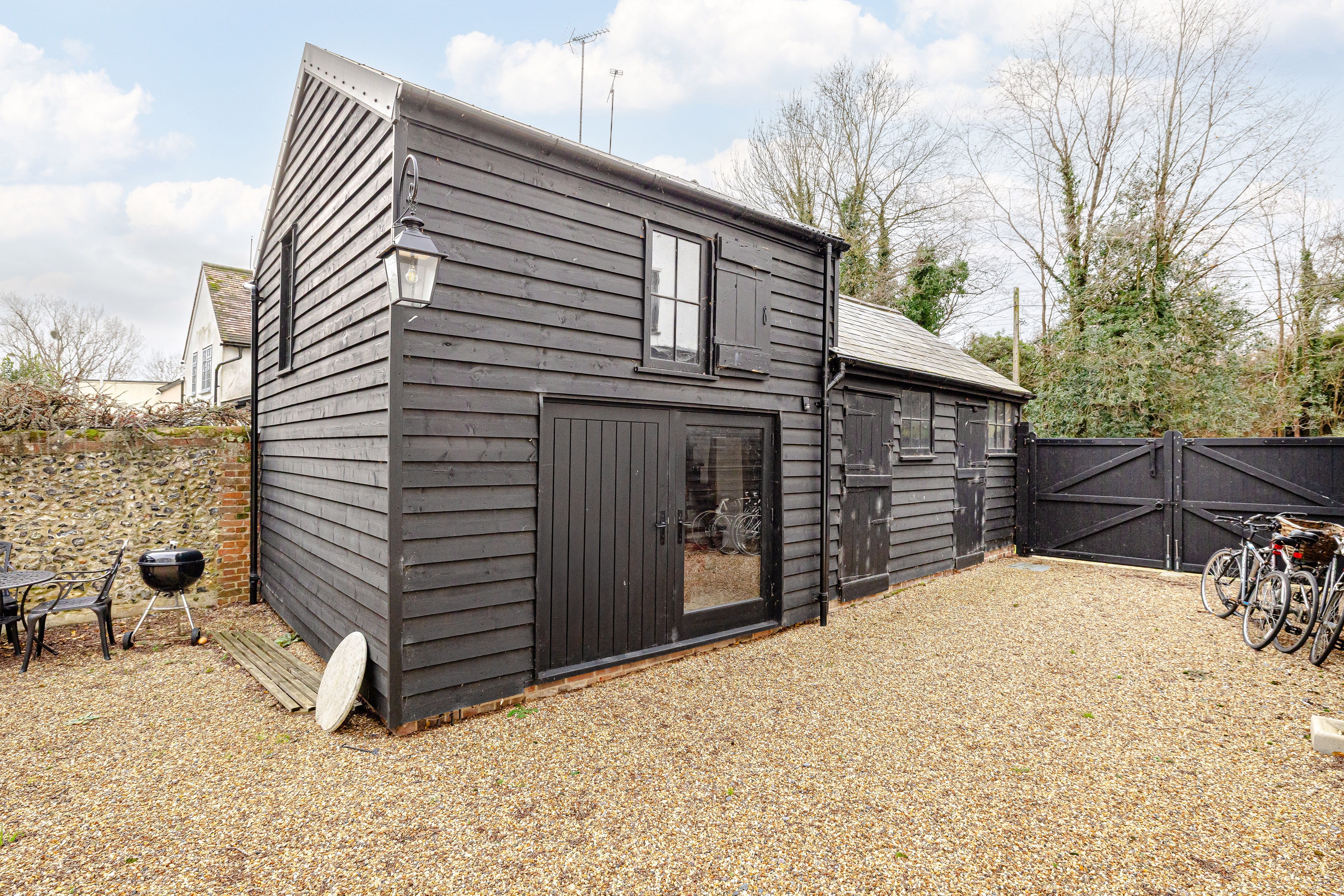 Set to the rear of the property, a substantial detached outbuilding, which was a former stables, further enhances the versatility of Crown House. Finished in traditional black weatherboarding and arranged over two levels, this characterful structure provides a range of highly adaptable spaces, currently including a snug, gym and additional storage, along with a charming mezzanine-level studio or study reached via a timber staircase. With exposed beams, brick and flint detailing and excellent natural light, the outbuilding lends itself perfectly to home working, creative pursuits, a private retreat or ancillary accommodation, subject to any necessary consents.