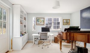 Behind its handsome and symmetrical façade lies over 4,500 sq ft of accommodation, arranged across three principal floors and complemented by a substantial detached outbuilding and a wonderfully private rear garden that belies the home’s central village setting.