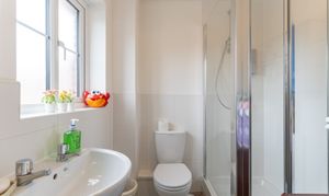 The first floor comprises three generously sized double bedrooms, each beautifully presented. The primary bedroom benefits from its own en-suite shower room, while the remaining bedrooms are served by a well-appointed family bathroom with a modern three-piece suite.