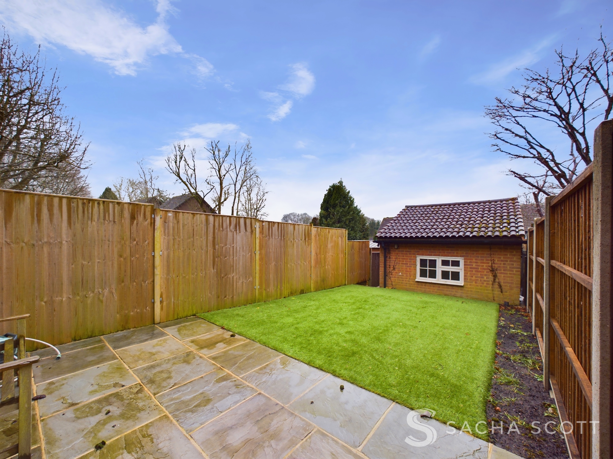 A west facing garden measuring 45ft overall with 25ft mainly lawned, with a patio area, and large garage with access to the side or via a side gate.