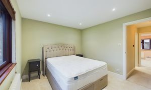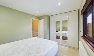 A good sized double, the primary bedroom offers fitted wardrobes, neutral carpeting and modern decor.