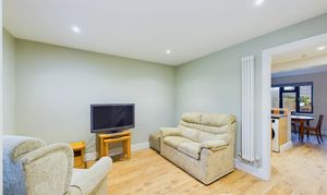 Overlooking communal gardens, this good sized lounge benefits from warm wooden flooring and modern decor.