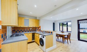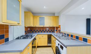 Offering all expected appliances, the kitchen offers plenty of storage and work surface space and opens up onto a good sized dining area.