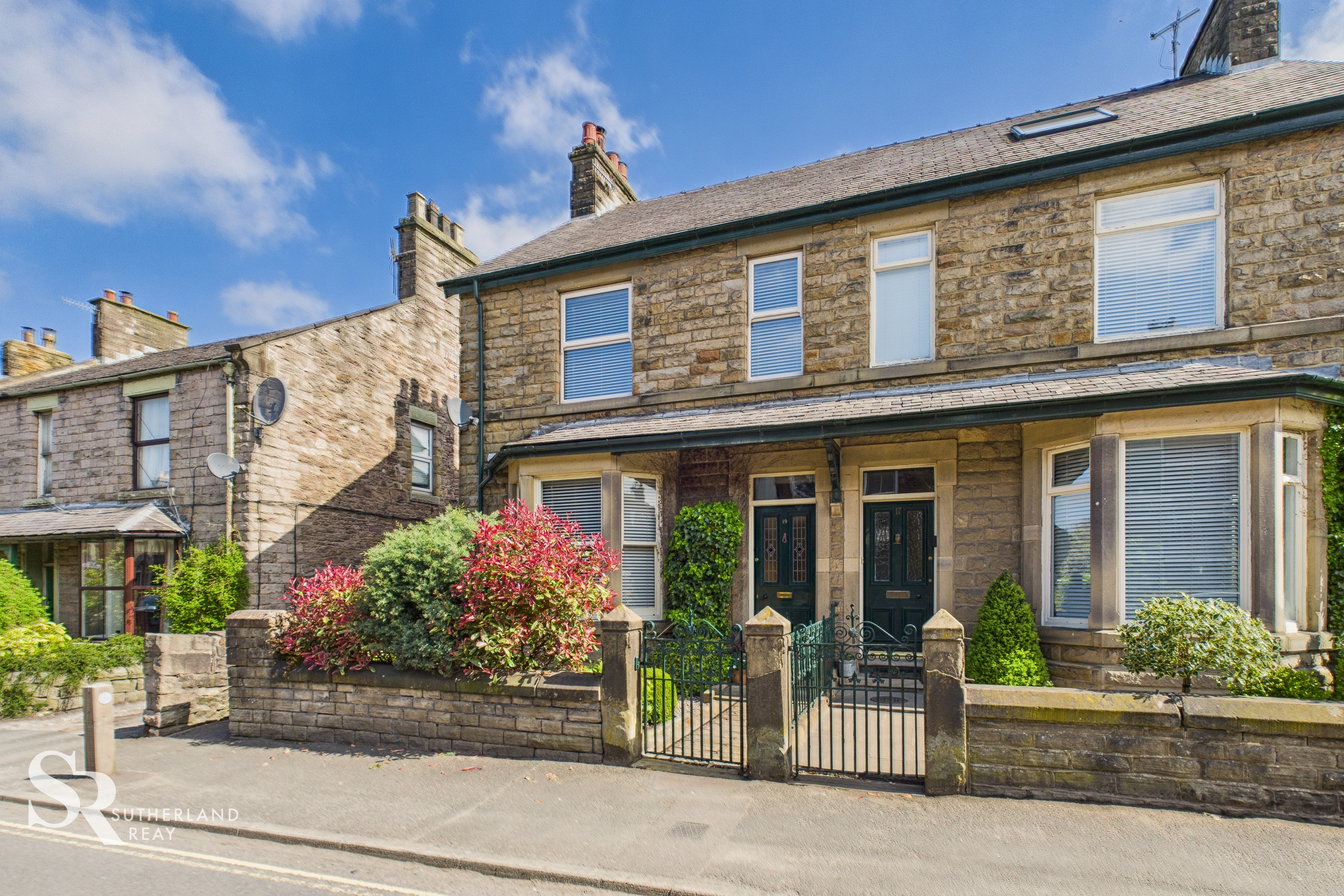 The attractive stone facade of the property is beautifully enhanced by a stone garden wall, complete with a smart cast iron gate. This creates a practical, low-maintenance front garden laid with attractive stone gravel. Mature, verdant hedges provide a good degree of privacy to the front of the house.