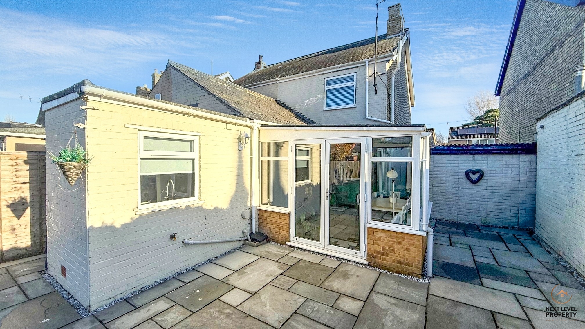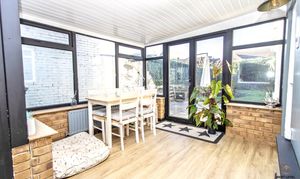 The property benefits from a well-built extended conservatory, complete with an insulated and clad roof and a solid brick base — creating a versatile room that can be enjoyed throughout the year. Double-glazed French doors open directly onto the garden, promoting easy indoor–outdoor living, while LVT flooring continues the home’s clean, modern feel.