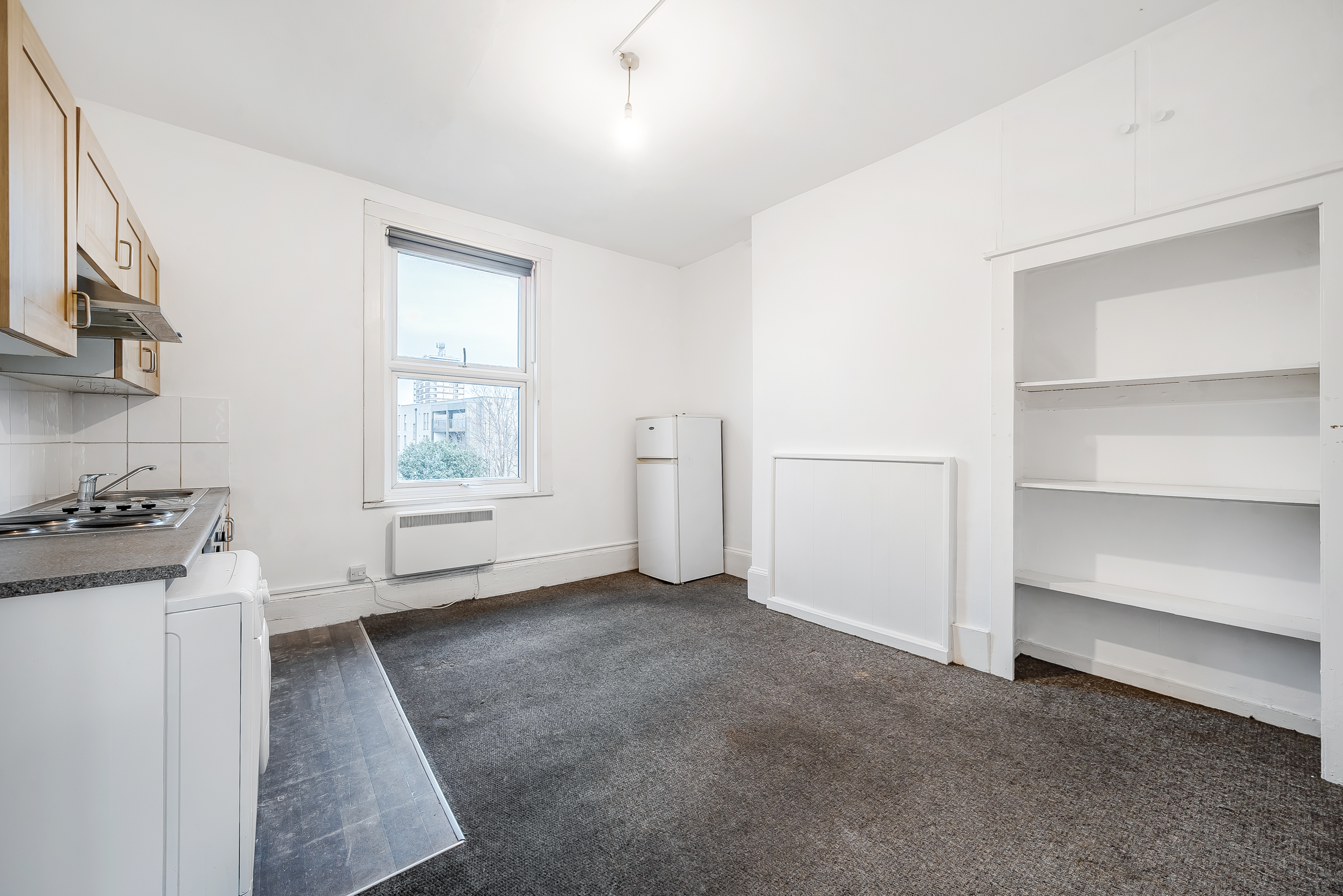 This well-presented one bedroom flat offers a superb opportunity for those seeking stylish and convenient living in the heart of New Cross. The property features a spacious bedroom with ample room for a double bed and additional furnishings. Natural lighting fills the flat, creating a bright and welcoming atmosphere throughout the day. The bedroom benefits from an en-suite shower room (providing privacy and convenience). The flat’s neutral décor provides a versatile backdrop, ready for personal touches to make it your own. The open-plan living area is designed for comfort and practicality, with space for both relaxation and dining. The kitchen is well-appointed, offering ample worktop and built in storage space for all your culinary needs.