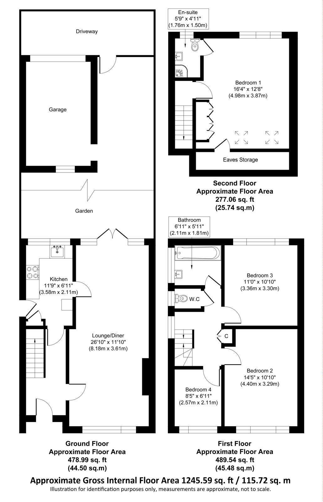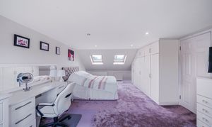 - Impressive Loft Conversion: This magnificent top-floor suite features dual aspect, custom fitted wardrobes, skylights, a modern en-suite shower room, garden views, and eaves storage