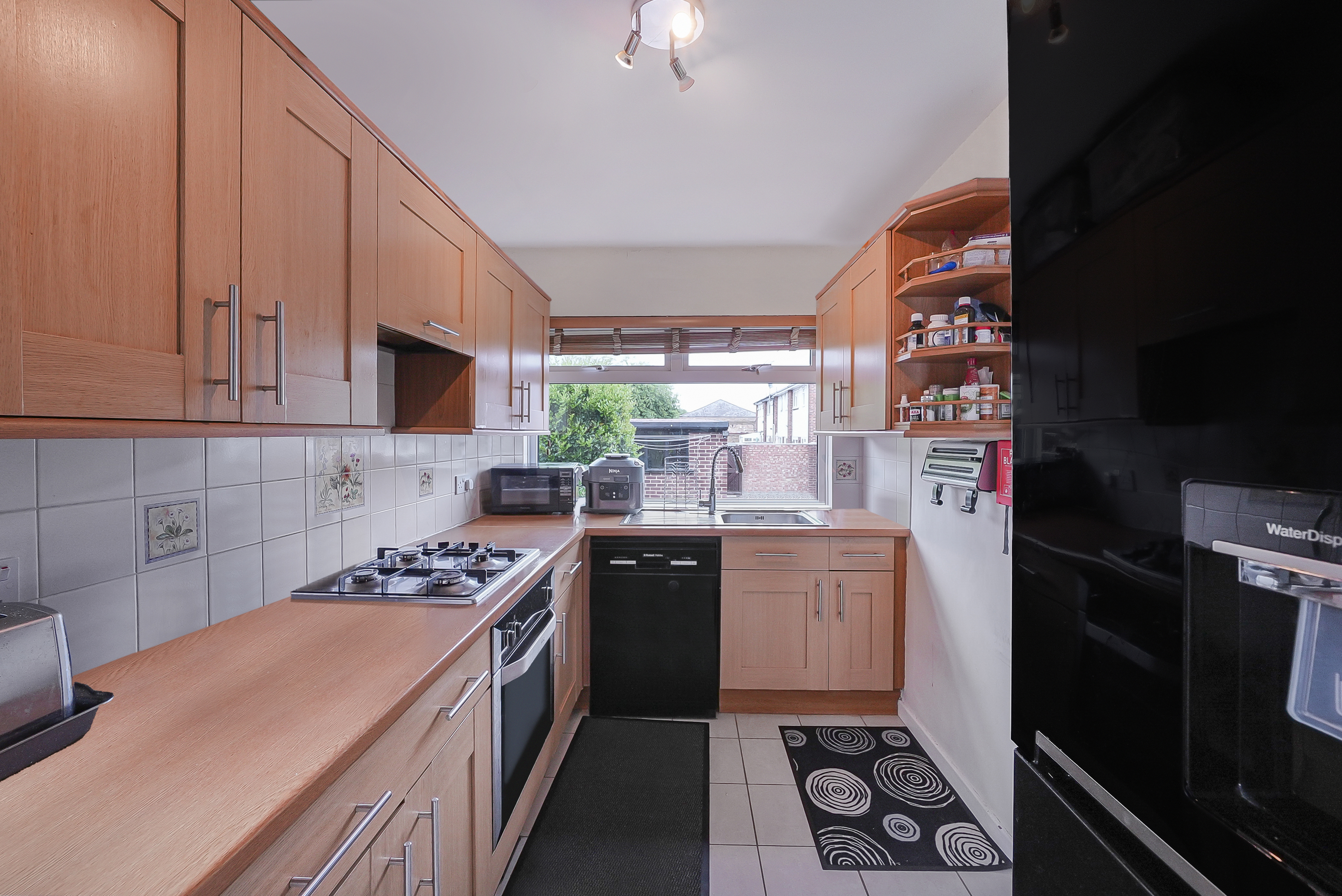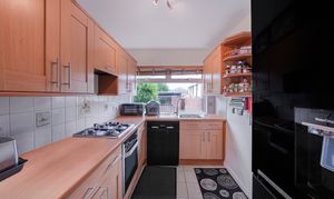 A convenient storm porch welcomes you into a generous entrance hall, complete with understairs storage. From here, doors lead seamlessly to both the kitchen and the lounge/diner. The lounge/diner is dual aspect, notably impressive in size, and wonderfully light, airy, and open. It benefits from pretty views over the front garden and features French doors and windows that open directly onto the private rear garden, providing seamless access to the outdoors. The kitchen, also accessible from the lounge/diner, offers charming garden views, with plumbing and space for both a dishwasher and a washing machine, alongside practical side access.