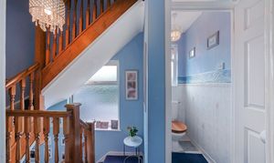 The first floor comprises a bright and airy landing, from which a staircase continues to the top floor. This level features two large double bedrooms, both comfortably accommodating kingsize bedroom furniture, and a single bedroom with ample space for a single bed, drawers, and wardrobes. For family convenience, there is a useful separate WC and a generous bathroom with a shower over the bath, sink, and heating. Furthermore, there is clear scope to create a larger, more impressive four-piece bathroom on this floor, incorporating the separate WC to add a dedicated shower cubicle, as evidenced by neighbouring properties.