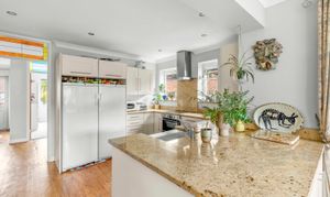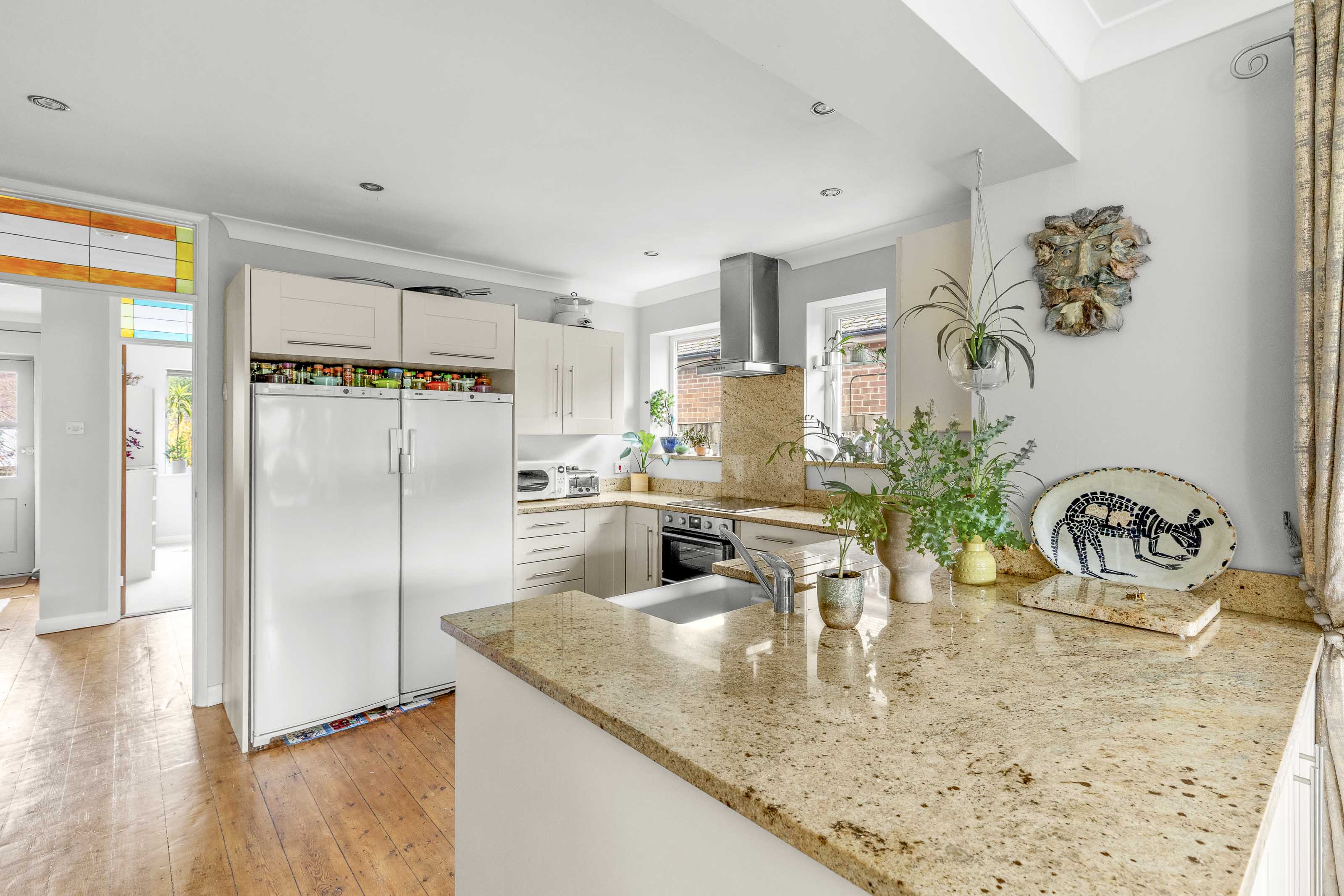 - Beautifully updated kitchen with a range of base & eye level units, Indian granite Madura gold worktops, splashbacks & window sills opening to a generous breakfast/dining room & door to winter garden