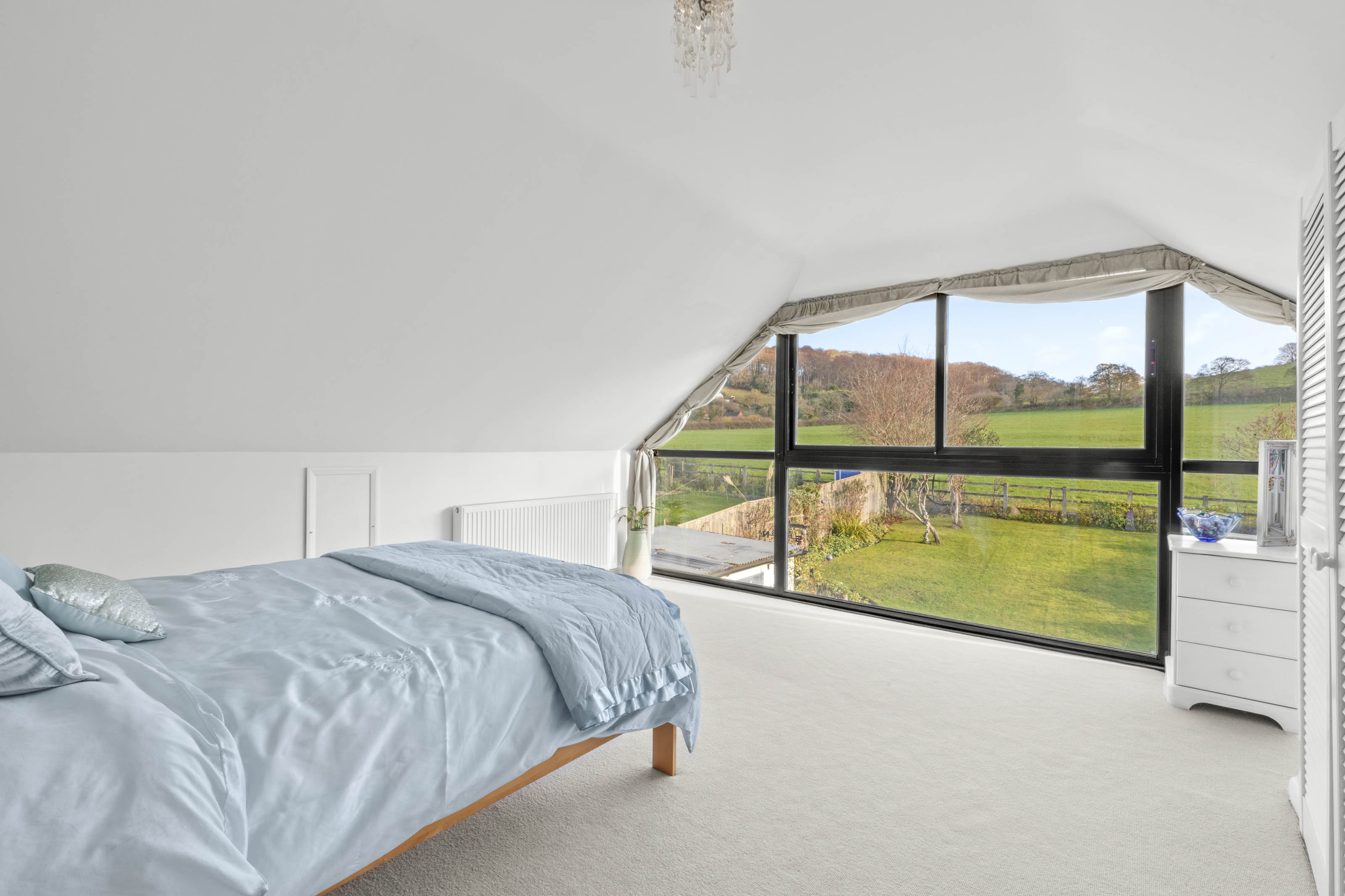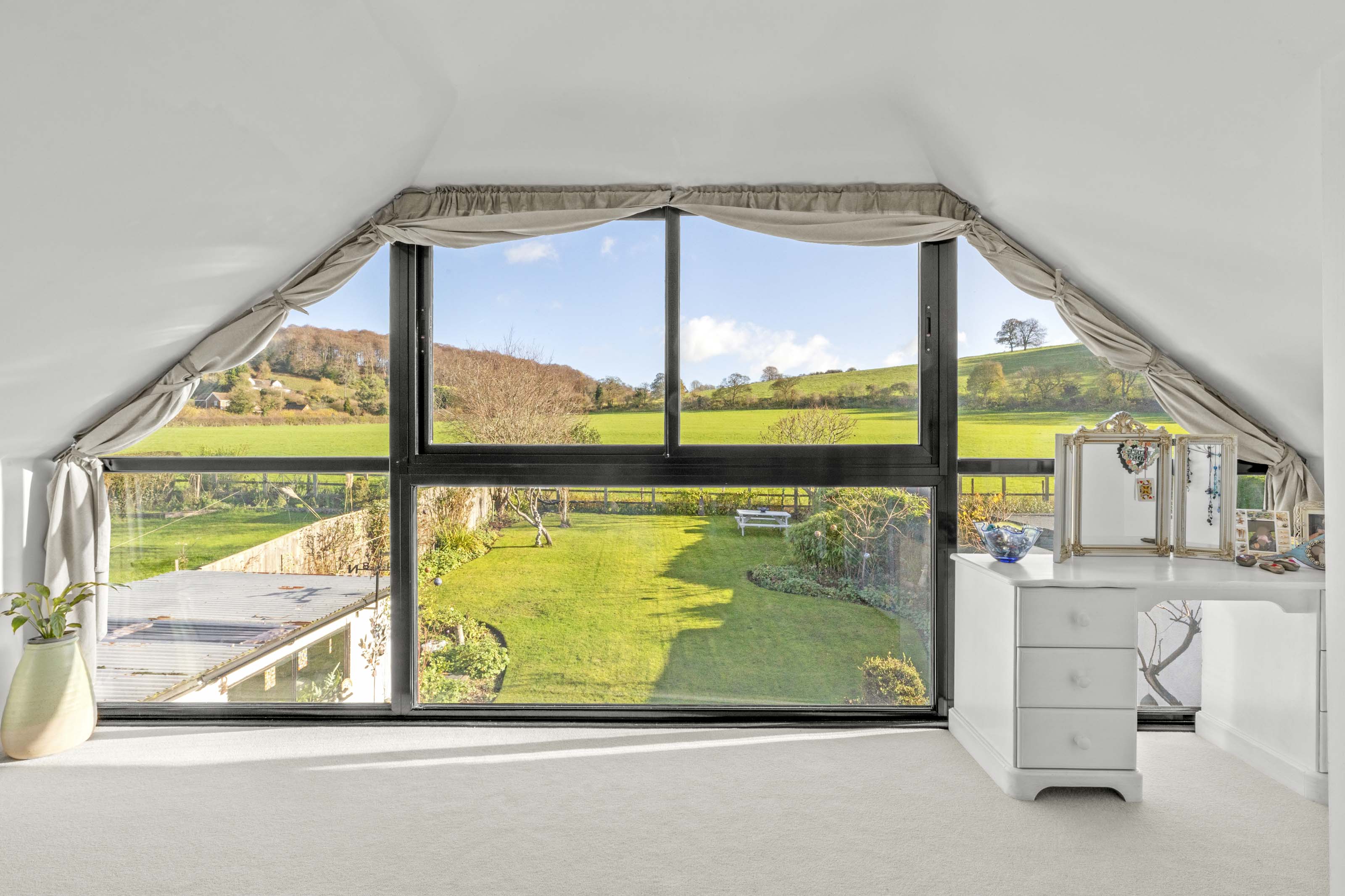 On the ground floor, two double bedrooms, a fifth bedroom/study, and a family bathroom provide comfortable living accommodations. To the first floor you will find the principal bedroom, with fitted cupboards and floor-to-ceiling windows that frame truly magnificent panoramic views of the rear. Another double bedroom, complete with fitted cupboards, is complemented by a family shower room.