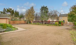 Electrically operated vehicular gate leading to driveway providing off road parking for several vehicles. Mature trees and shrubs. Gated access to side. Door to store/games room.