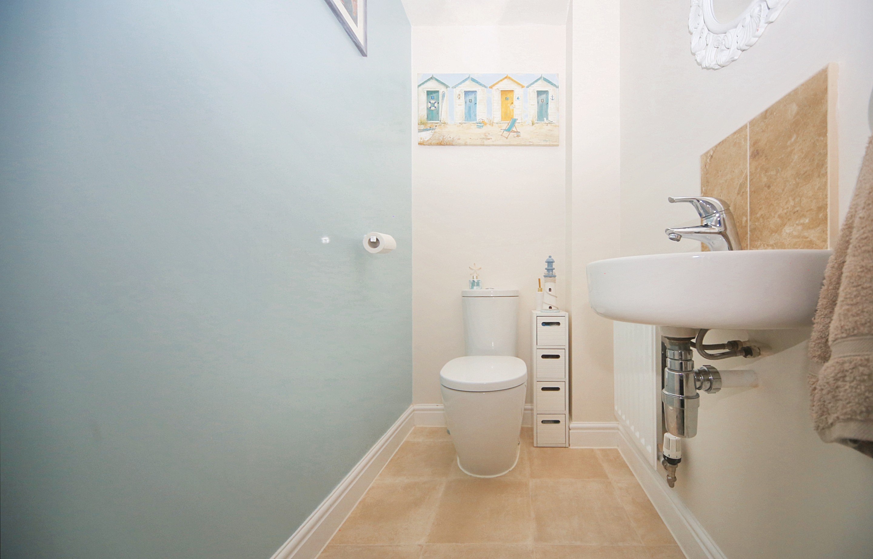 The property features an inviting entrance hall leading to a contemporary fitted kitchen with built-in appliances and smart, compact storage solutions. There is a handy downstairs WC and additional under-stairs storage with space for a washing machine.