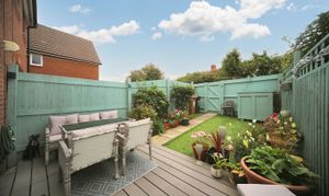 The bright and spacious lounge opens out onto a lovely rear garden, thoughtfully designed with both decking and lawned artificial grass area, perfect for relaxing or entertaining.