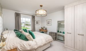 Upstairs, the bedrooms are all doubles, ideal for growing families, and there are two en suite shower rooms and a four-piece family bathroom, each with Roca sanitaryware and a Mira shower. The downstairs cloakroom matches these.