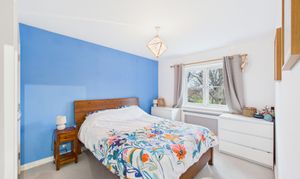 A spacious double, the primary bedroom is neutrally decorated with a feature wall and offers ample room for freestanding furniture as well as a fitted double wardrobe.