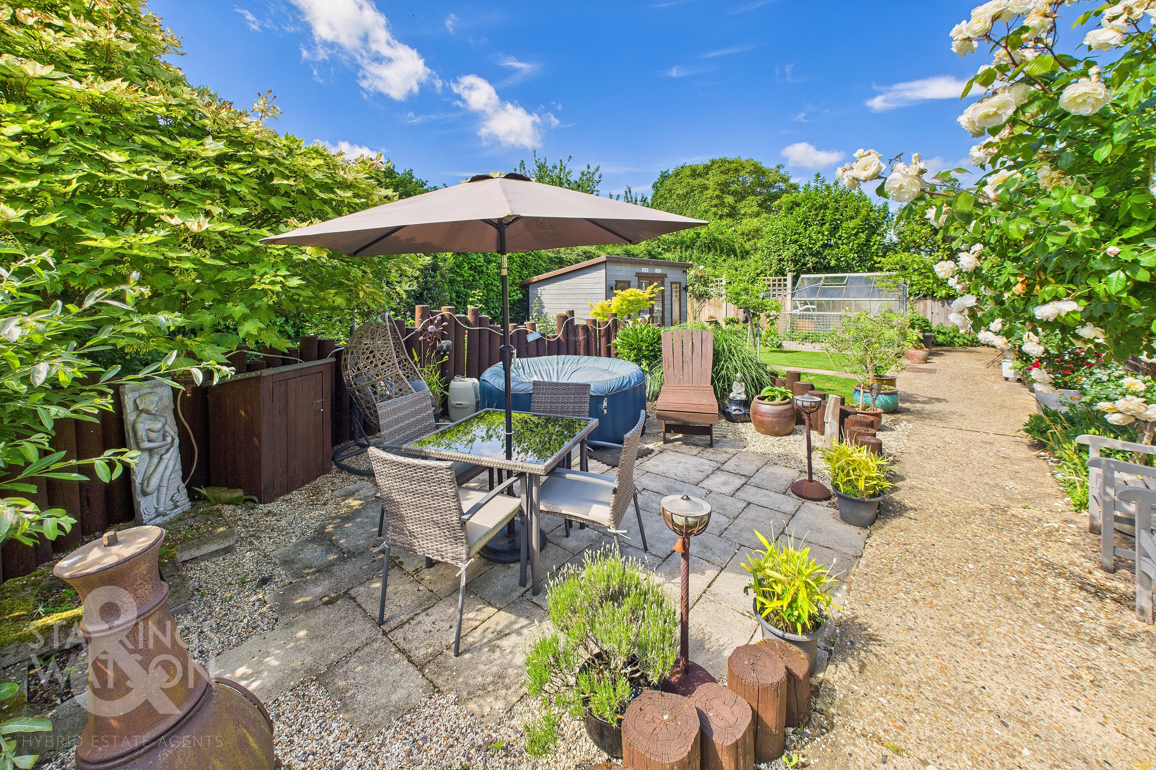 THE GREAT OUTDOORS The gardens wrap around the property to the side and rear, offering patio seating area and lawned expanse to the rear, with a timber built summer house offering a home office or studio space. With a working garden including a greenhouse and raised vegetable beds, access leads to the garage and outdoor WC with a variety of plants. Leading to the side lawned garden which is enclosed with timber panel fencing and mature hedging, gated access leads to the driveway and storage area sitting beyond the second garage. The main garage which adjoins the property includes an up and over door to front, door to rear, power and lighting. The second garage also includes an up and over door to front.