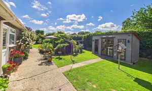 Guide Price £375,000-£400,000. Tucked away in a serene CUL-DE-SAC, this charming property boasts over 1130 sq. ft (stms) of accommodation on an impressive 0.20 ACRE PLOT (stms). Upon entering, you are greeted by a WELCOMING HALL ENTRANCE, leading to a spacious 16' SITTING ROOM - flooded with natural light through the FULL HEIGHT front facing window, ideal for relaxation and entertainment. The heart of the home, a GENEROUS 20' KITCHEN/BREAKFAST ROOM beckons with its inviting ambience, while a convenient UTILITY ROOM doubles up as a potential GARDEN ROOM or STUDY for those seeking a tranquil spot. The property comprises THREE well-appointed BEDROOMS, ensuring ample space for rest and privacy, along with the FAMILY BATHROOM. The GARDENS WRAP AROUND the property, with TWO LAWNED AREA, patio seating, and a working garden, along with a SUMMER HOUSE. A standout feature is the TWIN GARAGES, providing practical storage solutions for vehicles and additional space for household items, along with an outside W.C - making the adjoining GARAGE ideal for CONVERSION - subject to planning.