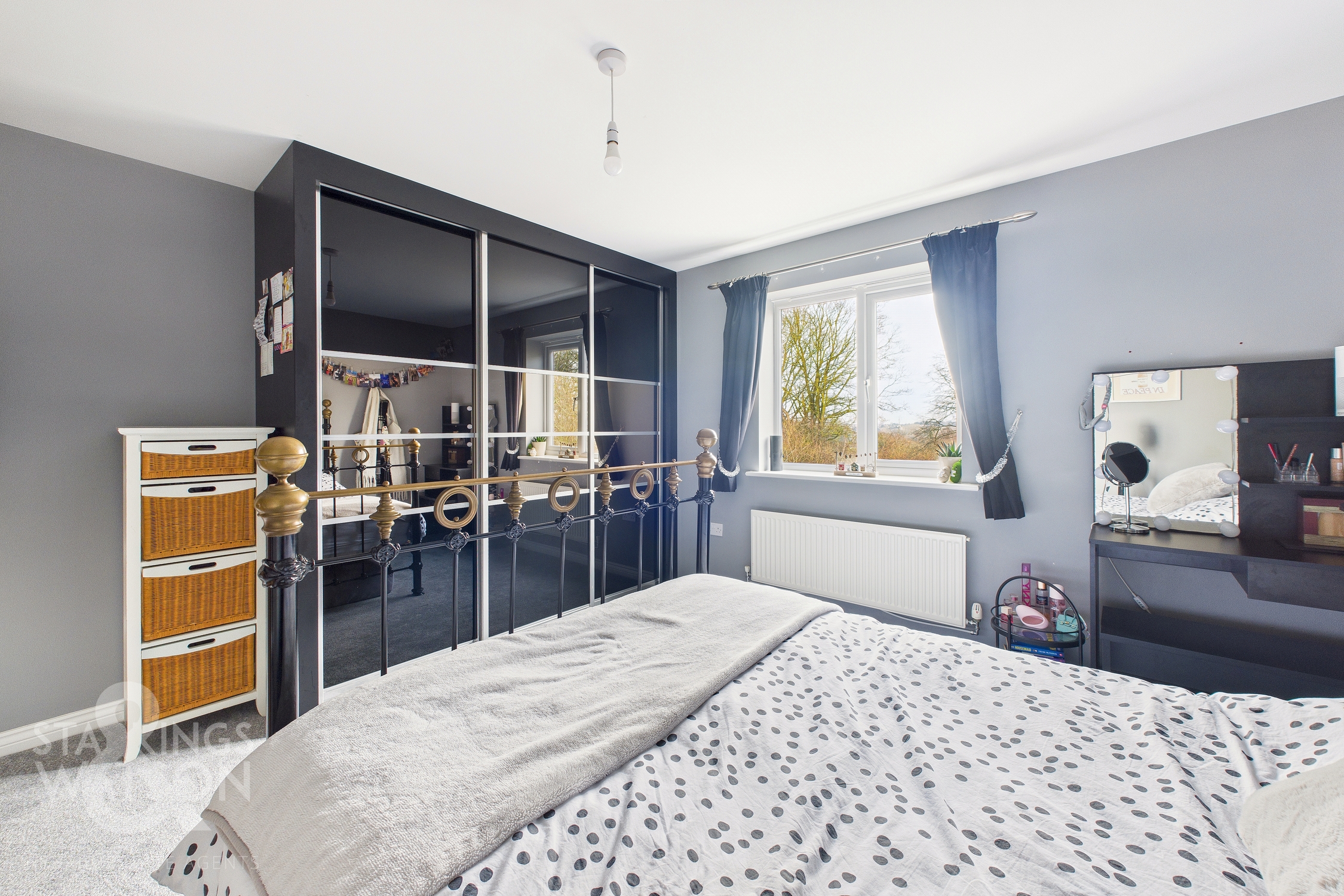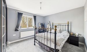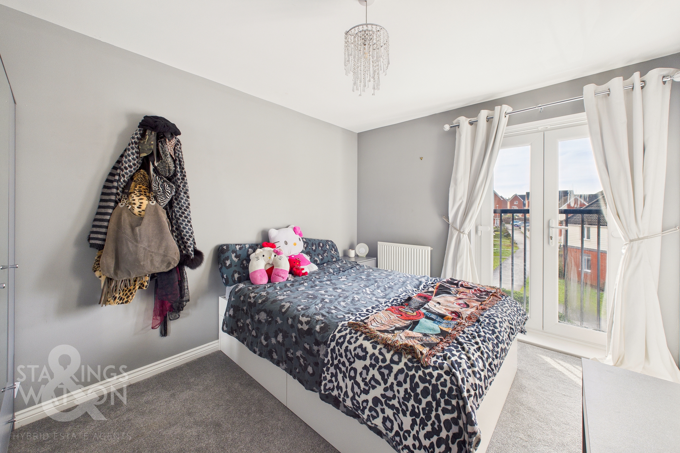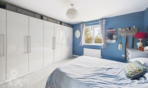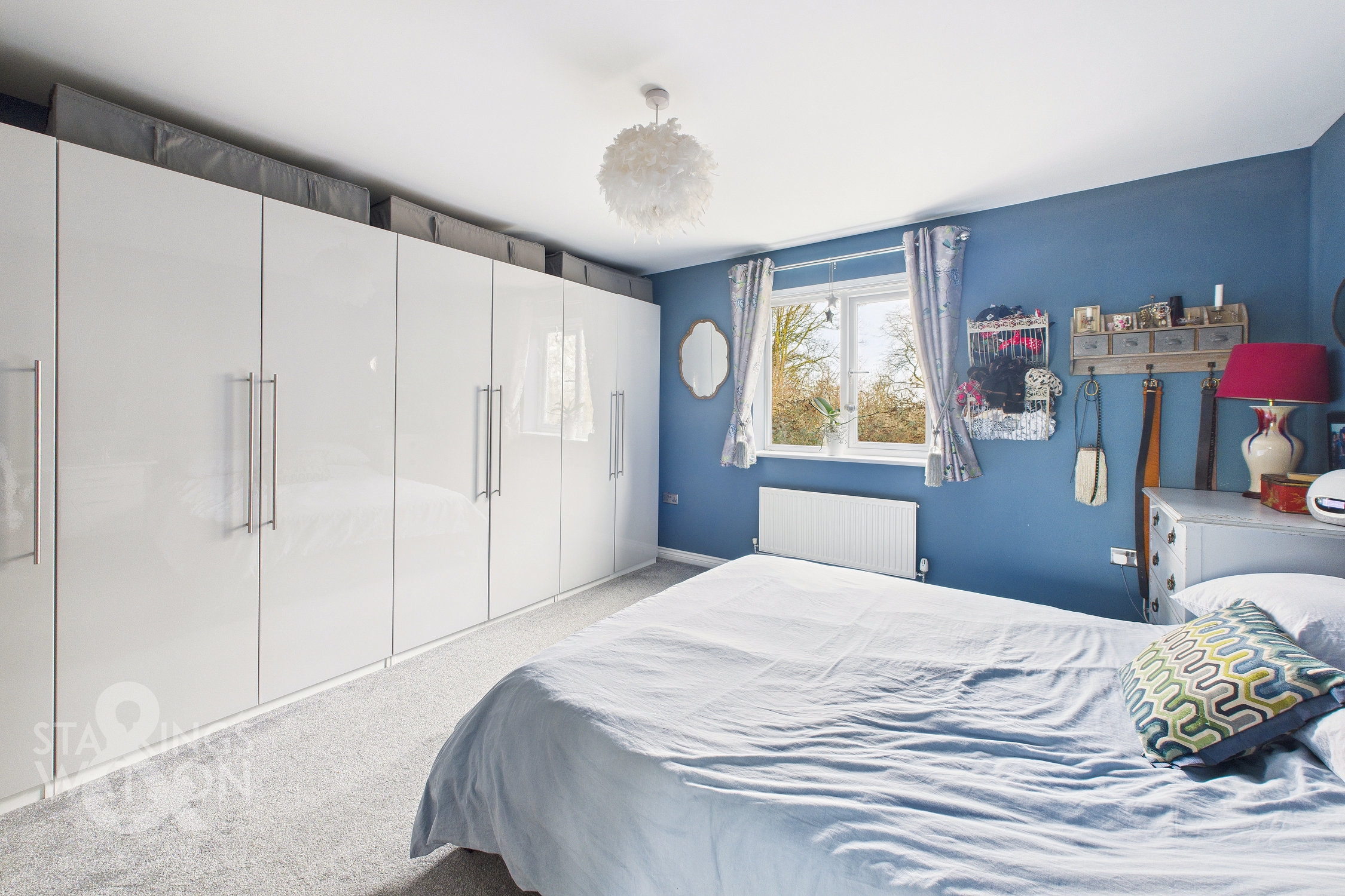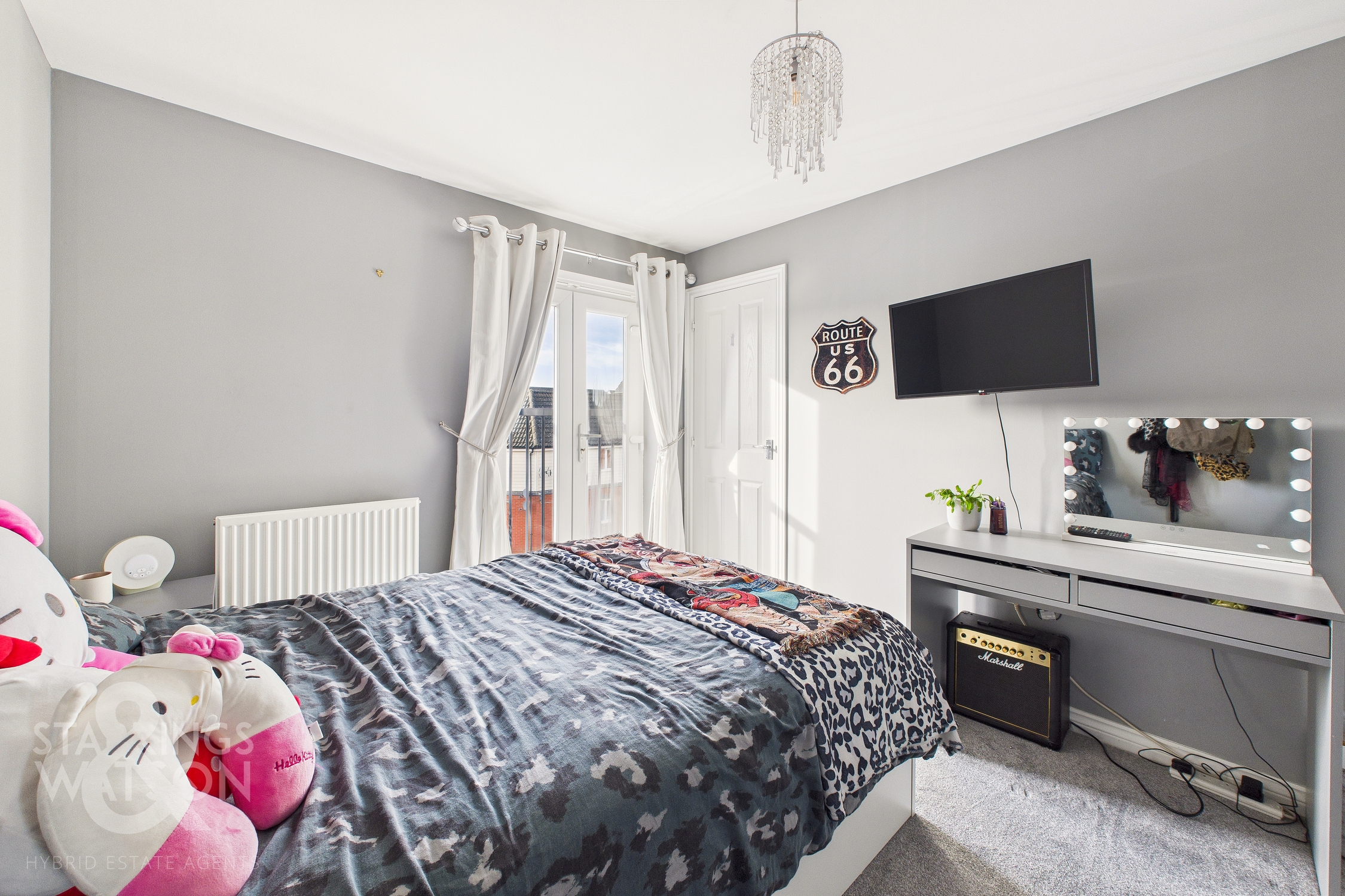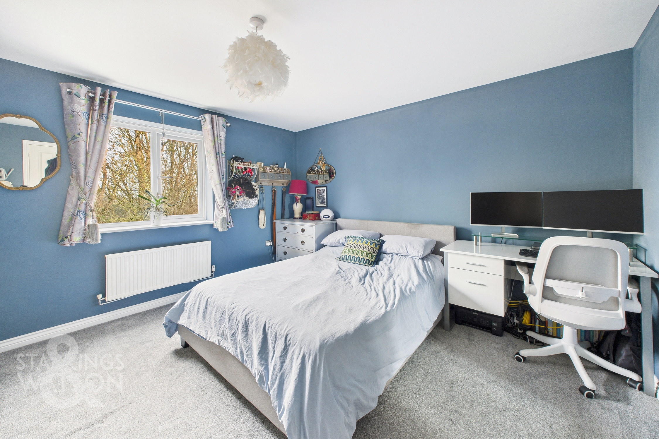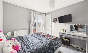The second floor landing provides access to a further two bedrooms. The main bedroom enjoys substantial fitted wardrobes with sliding doors and a peaceful rear facing aspect overlooking the tree lined backdrop behind the property. This room further benefits from a private en-suite shower room, including an inset double shower cubicle with a glass sliding door. The final bedroom at the front of the home enjoys French doors opening to a Juliet balcony, along with useful integrated wardrobes to the corner.