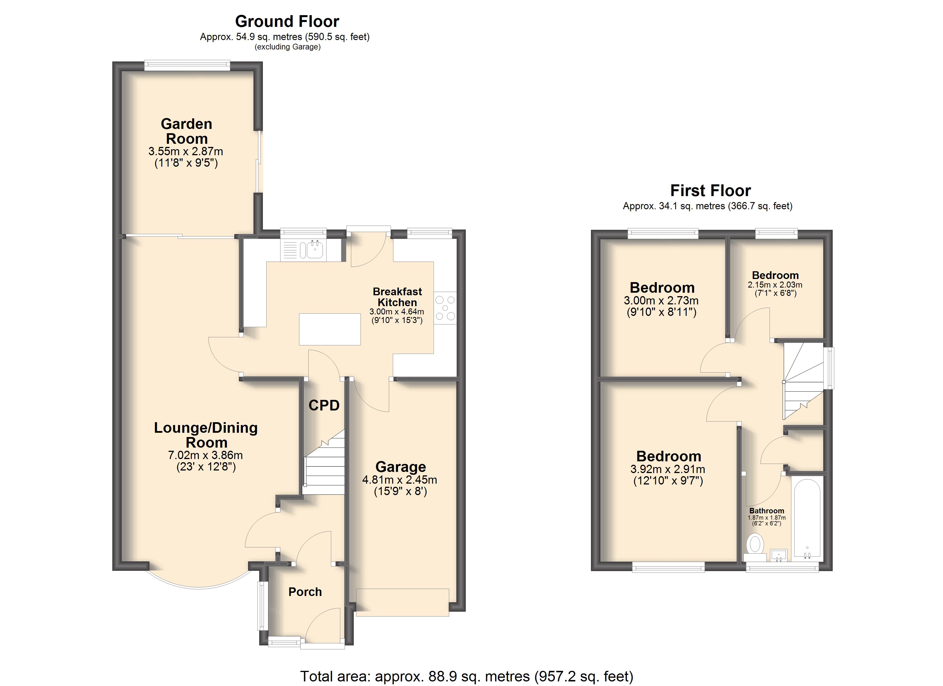 - Approx Sq Feet: 957 sqft