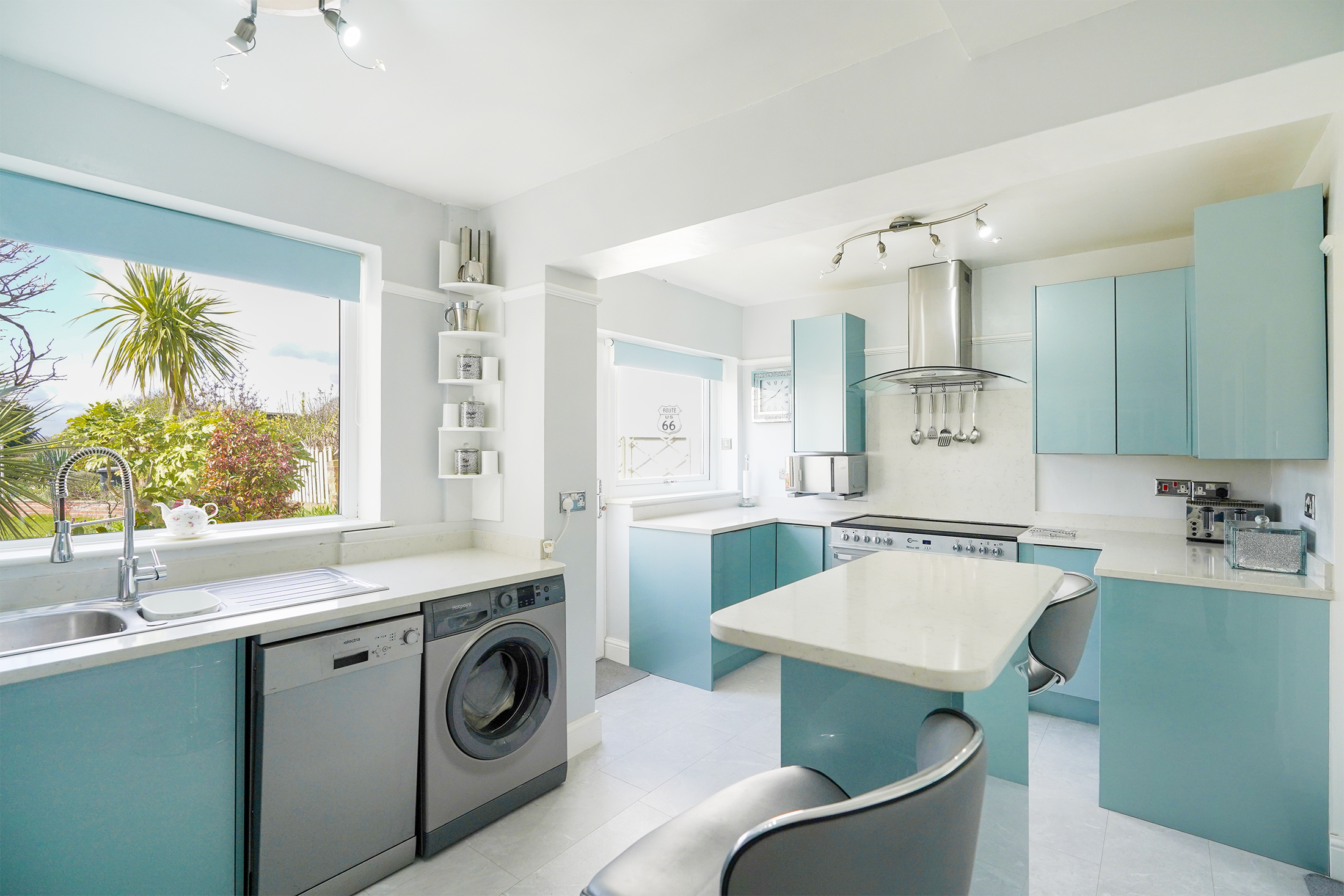 The property welcomes you with an impressive open plan lounge and dining room, enhanced by a feature fireplace and contemporary decor. The ground-floor has been thoughtfully extended to include a bright and versatile garden room, providing flexible additional living space with views over the garden. The modern fitted kitchen is a true highlight, boasting a central island, a range cooker, and ample storage.