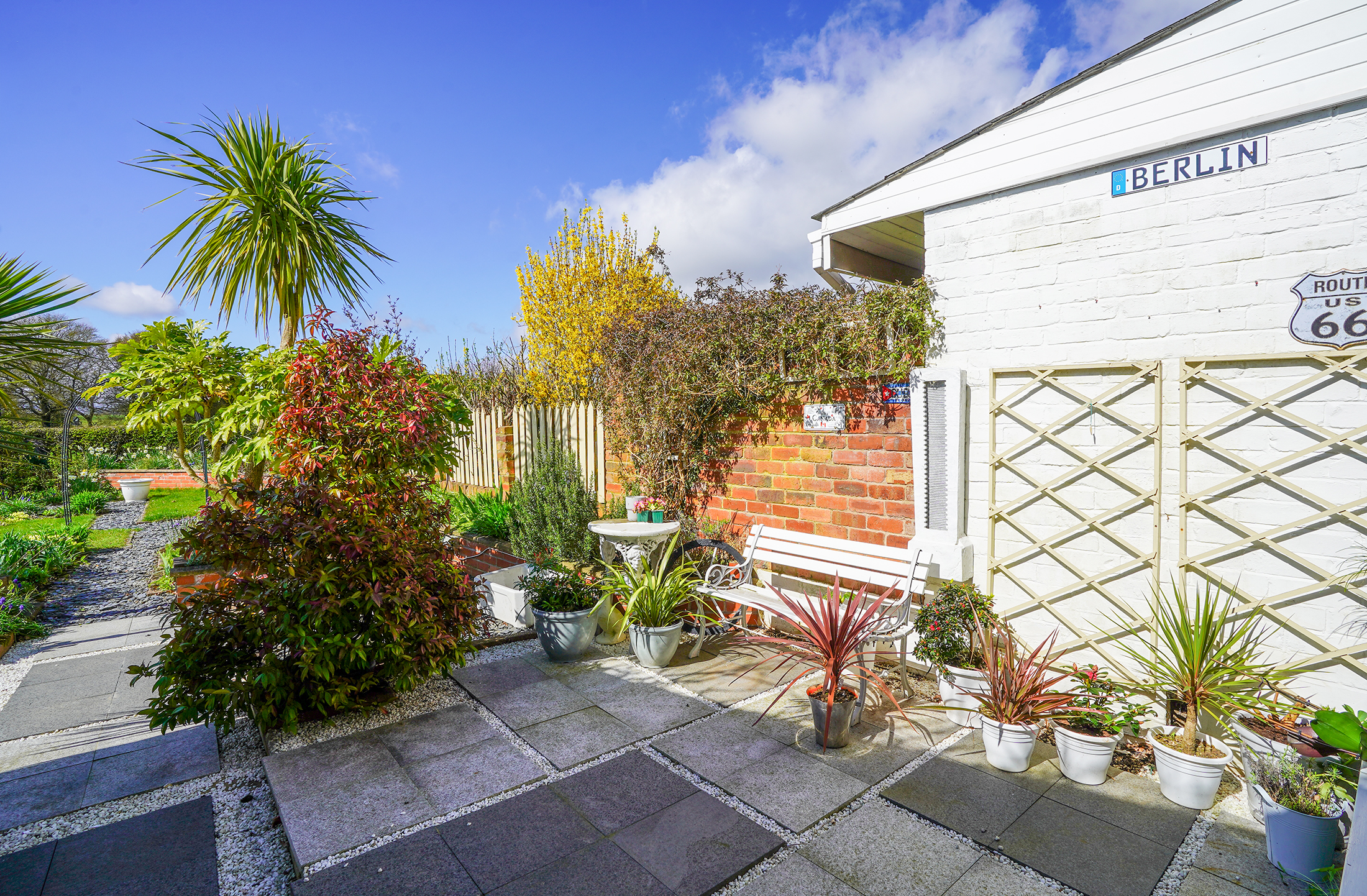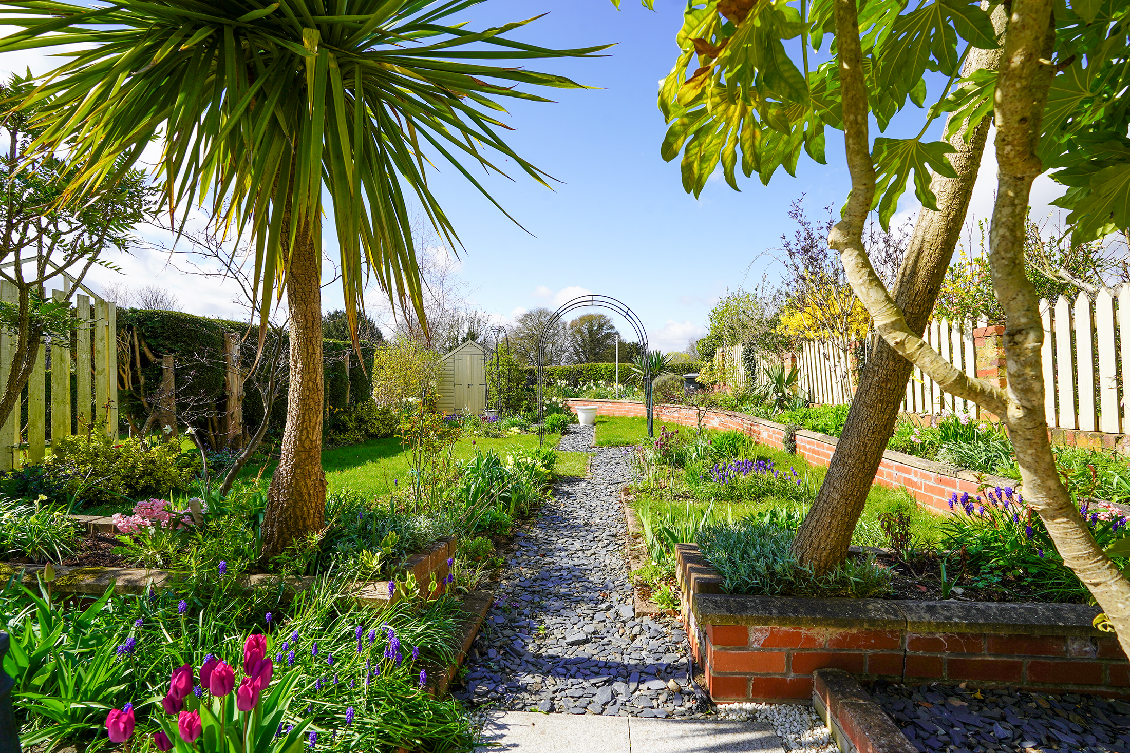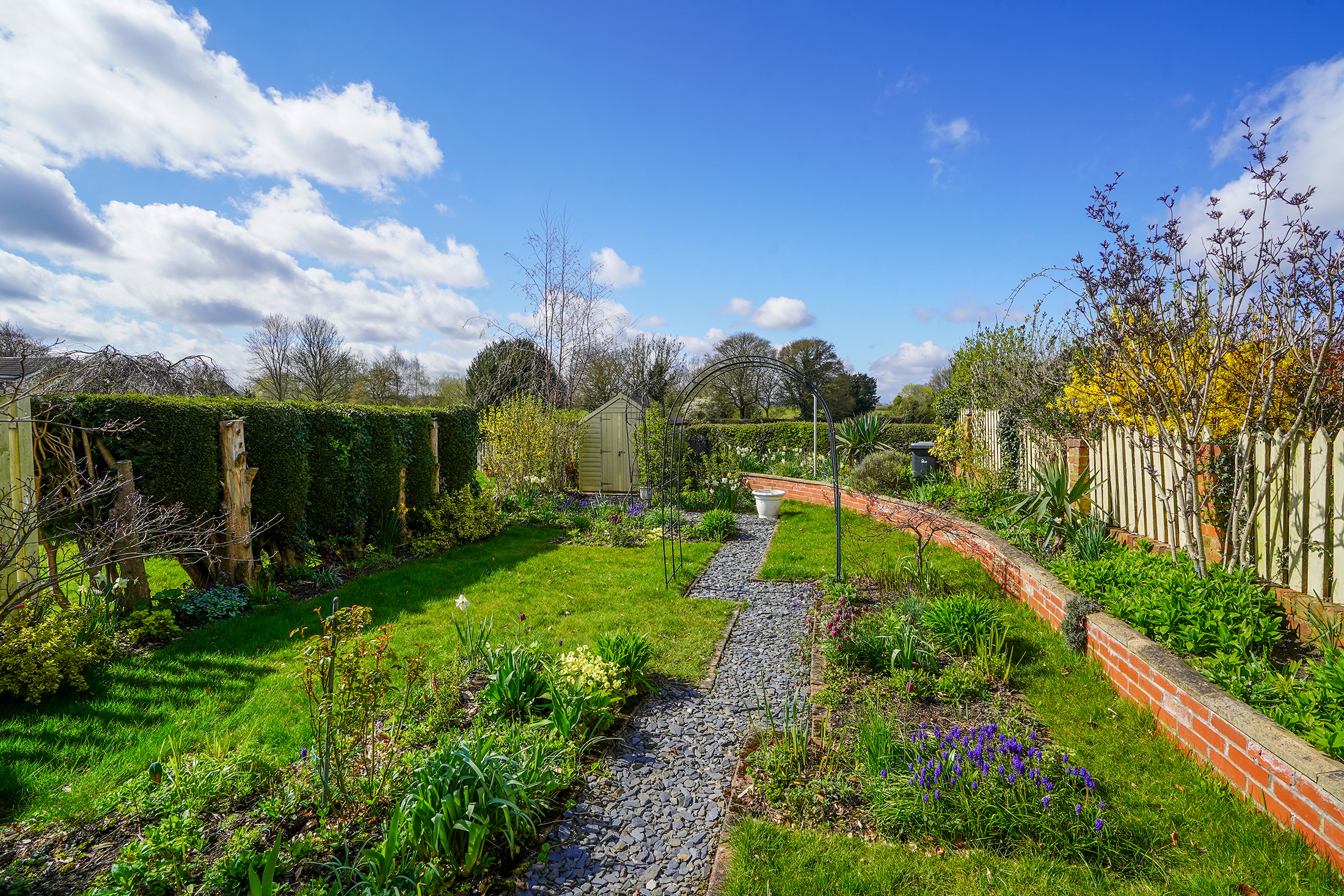 - Landscaped Garden With Patio Area, Lawn, Shed and Colourful Borders