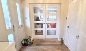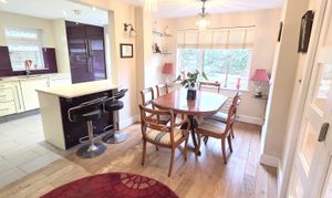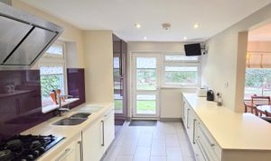 Reception Hall wooden flooring and internal part glazed doors. Cloakroom/ WC fitted modern white suite. Ground Floor Double Bedroom front window. En-Suite Shower Room fitted modern white suite (Bedroom + En-Suite - Garage conversion in 2025). Sitting Room double aspect, feature wood burner and stairs to first floor. Kitchen re-fitted range of units, worksurfaces, 5-ring gas hob, extractor, eye level oven/grill, integrated fridge/freezer, washer / dryer, door to garden and breakfast bar. Dining Room space for family table and chairs and folding doors. Family Room wooden floor and folding doors to the garden. Utility Room space for appliances + storage housing ‘Worcester gas boiler.