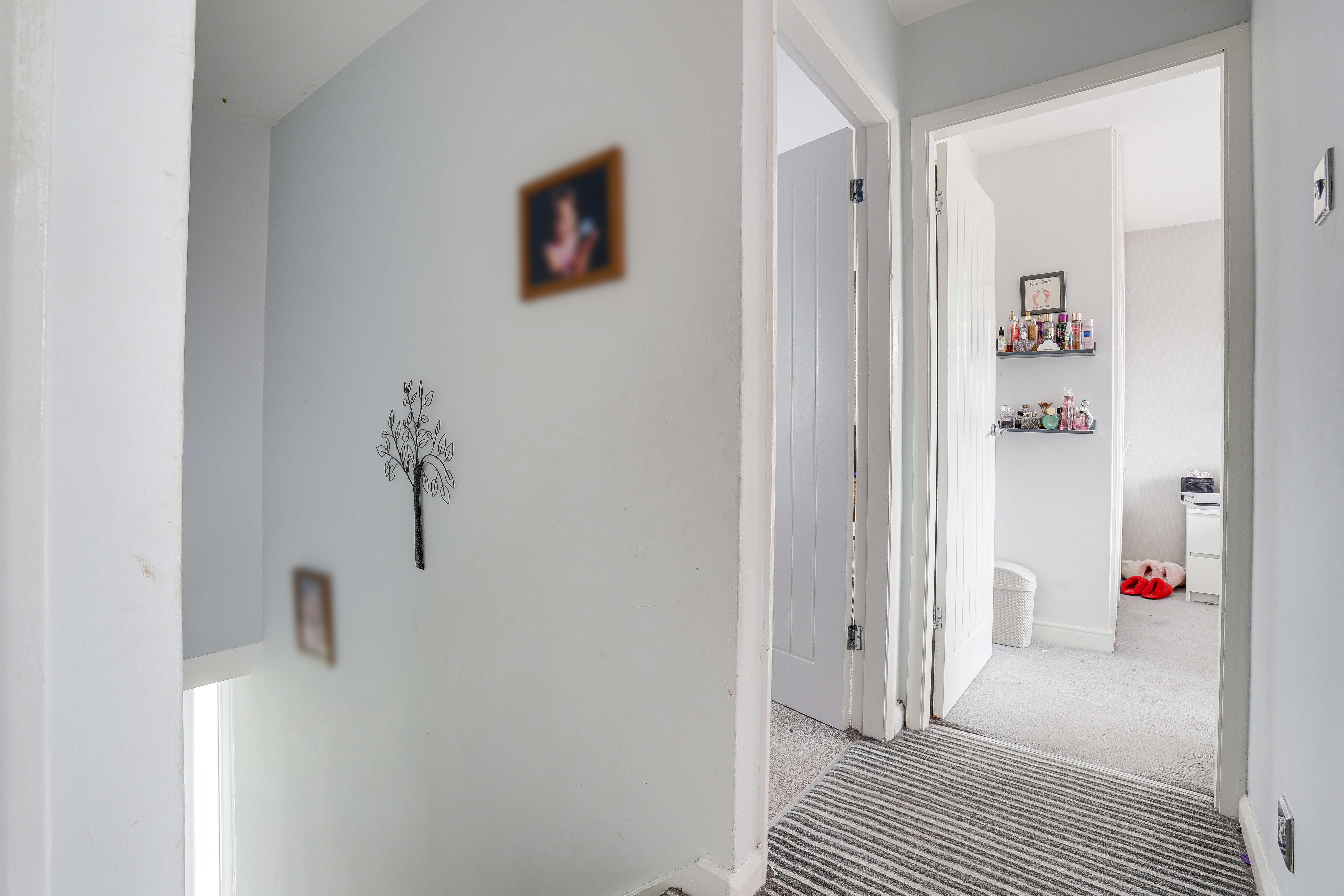 The landing has carpeted flooring, access to the loft, and provides access to the first floor accommodation.