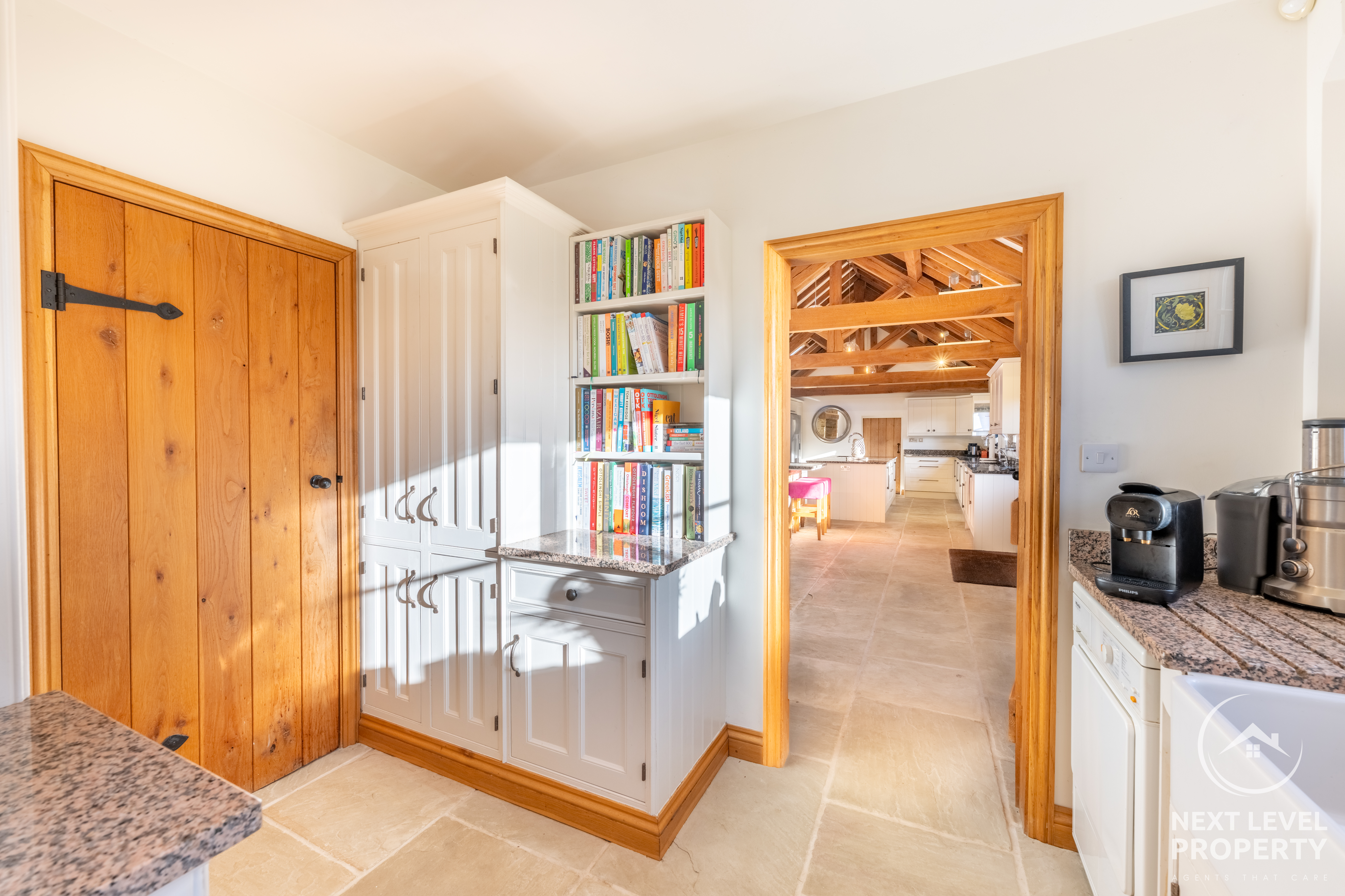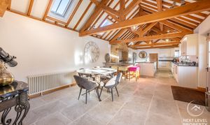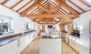 - Exceptional Open-Plan Kitchen & Dining Hall A breathtaking vaulted space with exposed timbers, bespoke shaker cabinetry, granite worktops, island and breakfast bar — the true heart of the home.
