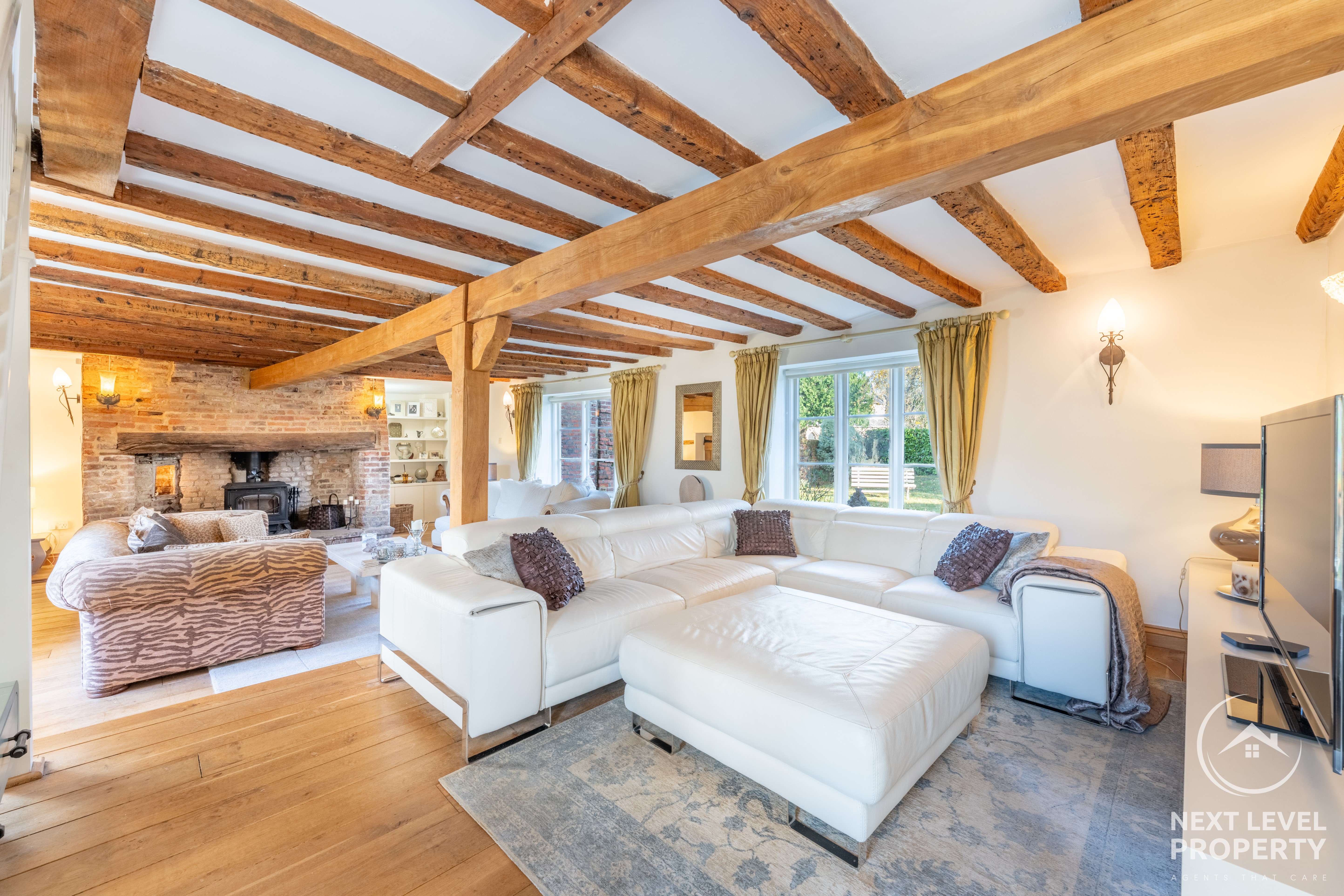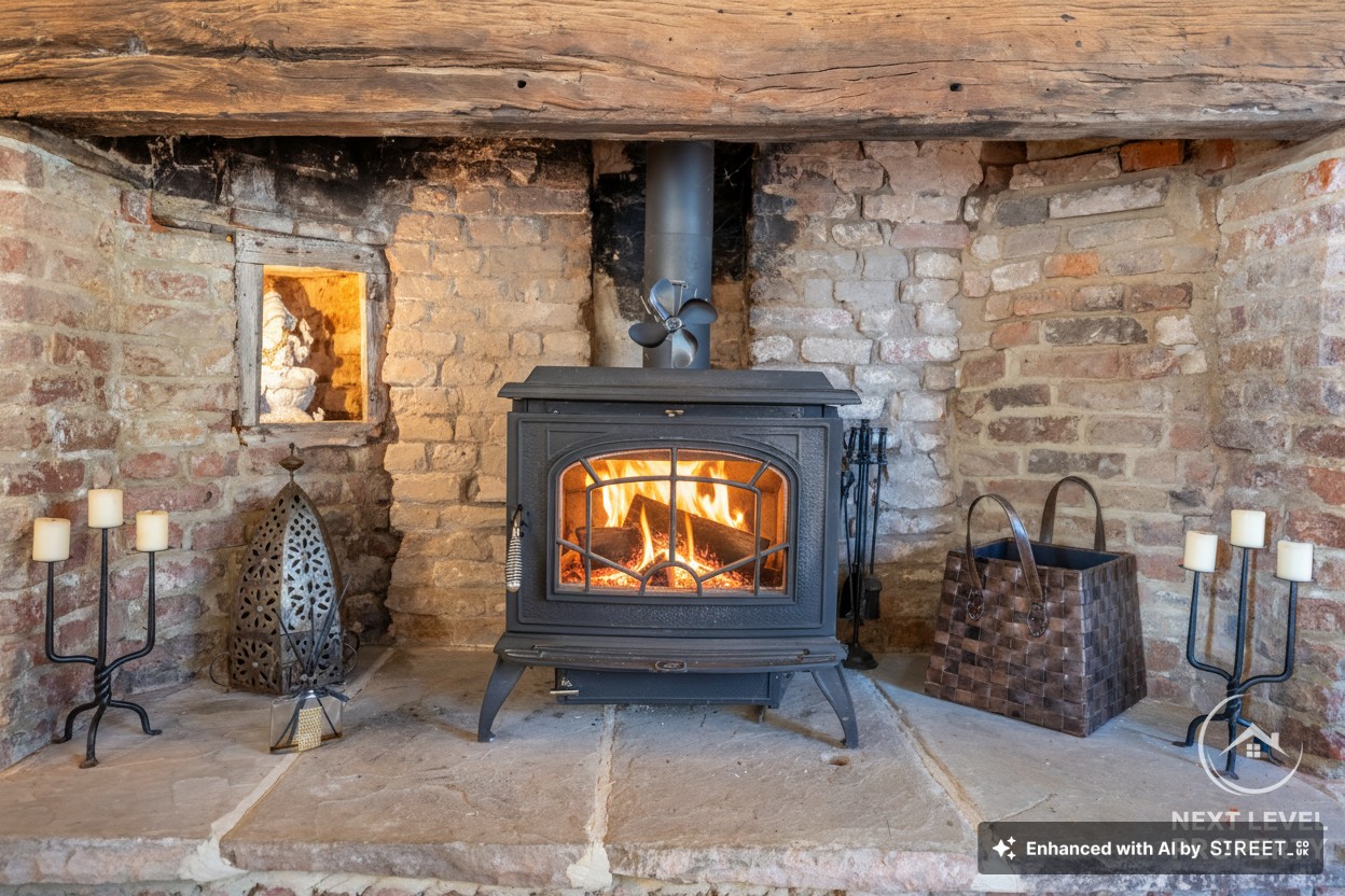 - Elegant Dual-Aspect Sitting Room Featuring an impressive inglenook-style fireplace with log burner, original floorboards and a wonderfully intimate atmosphere.