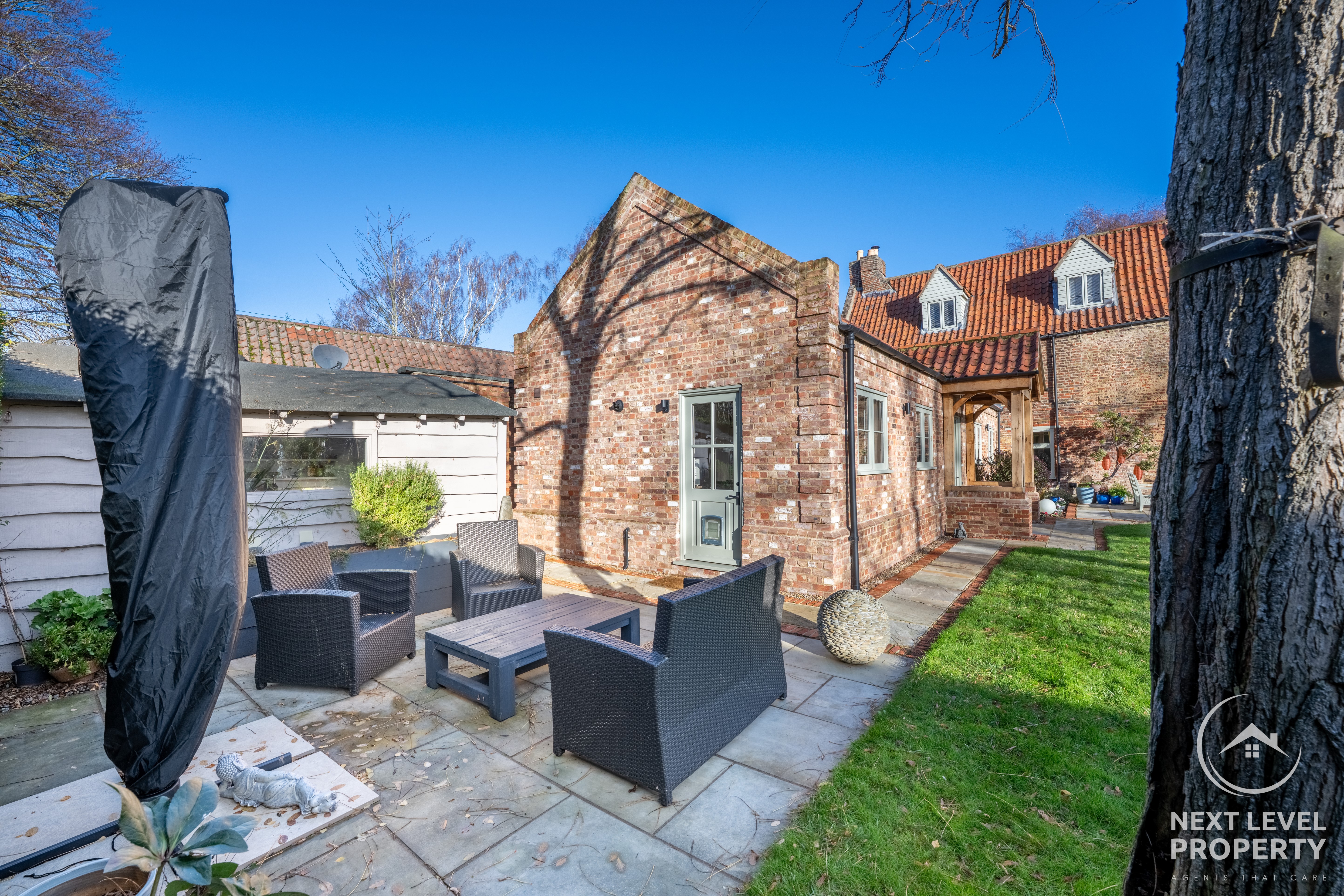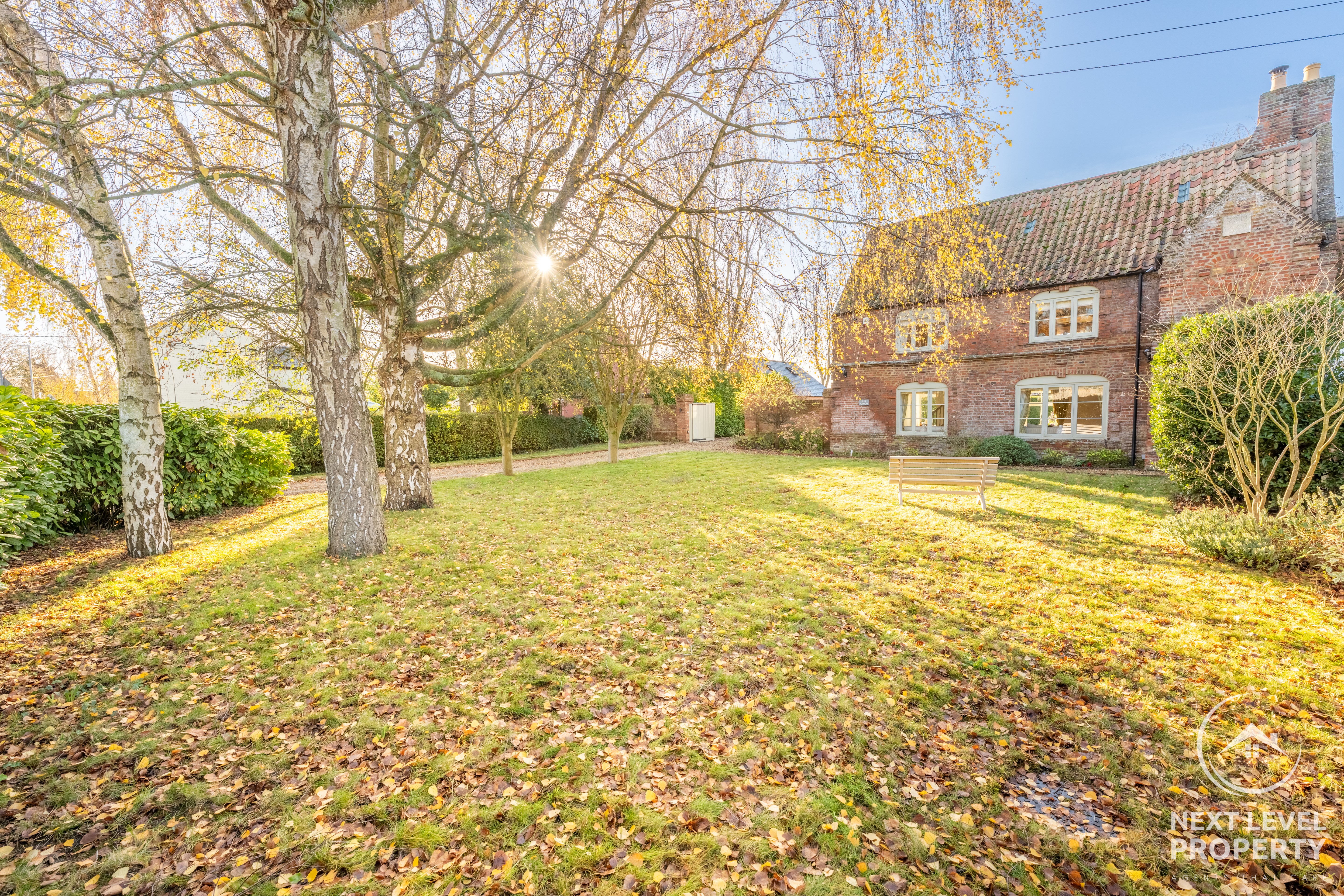 Mature trees shade quiet seating areas; seasonal colour spills from well-kept borders; the south-facing garden catches the best of the afternoon sun. Everything here feels considered, effortless, loved.