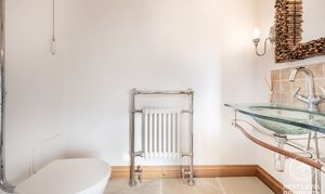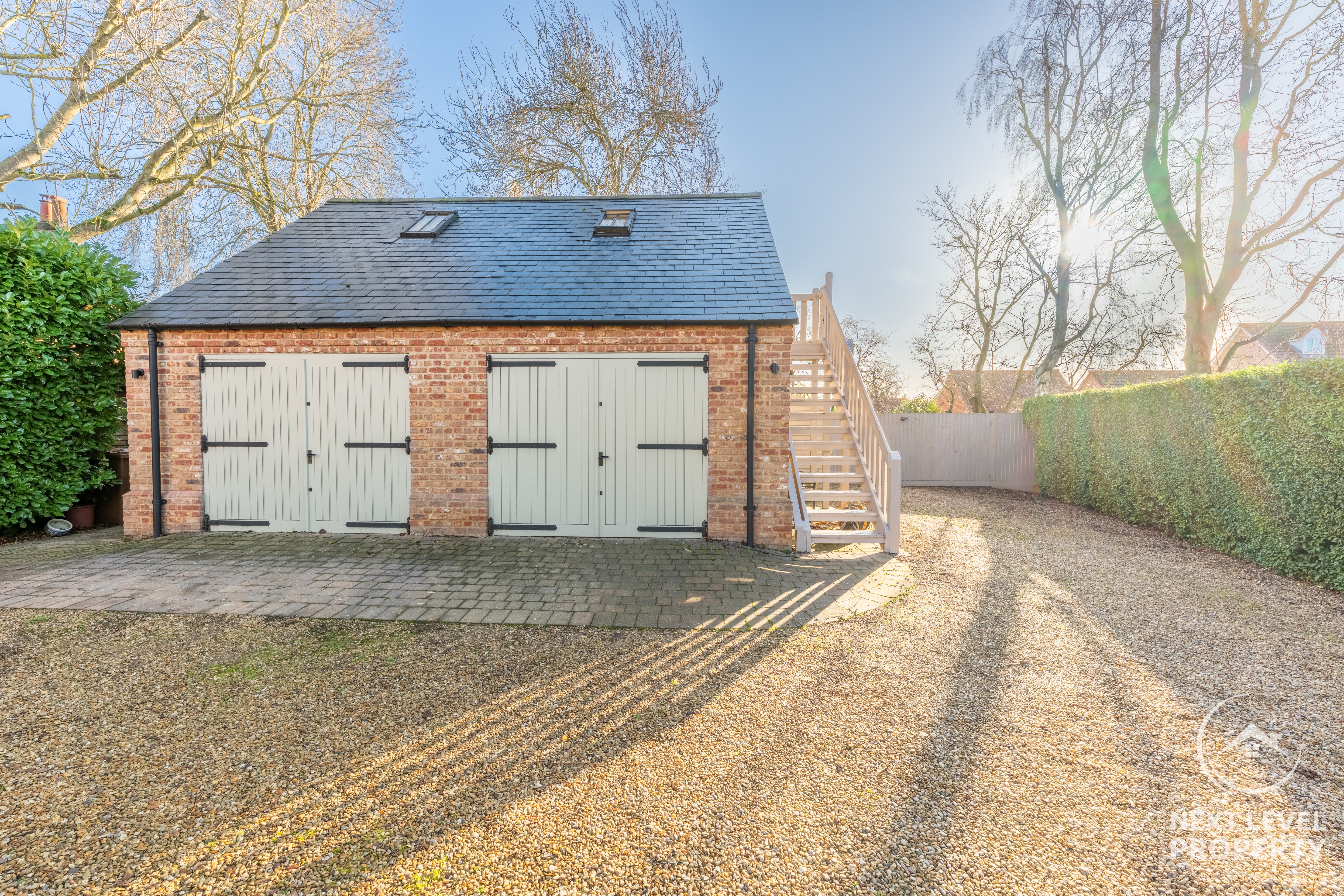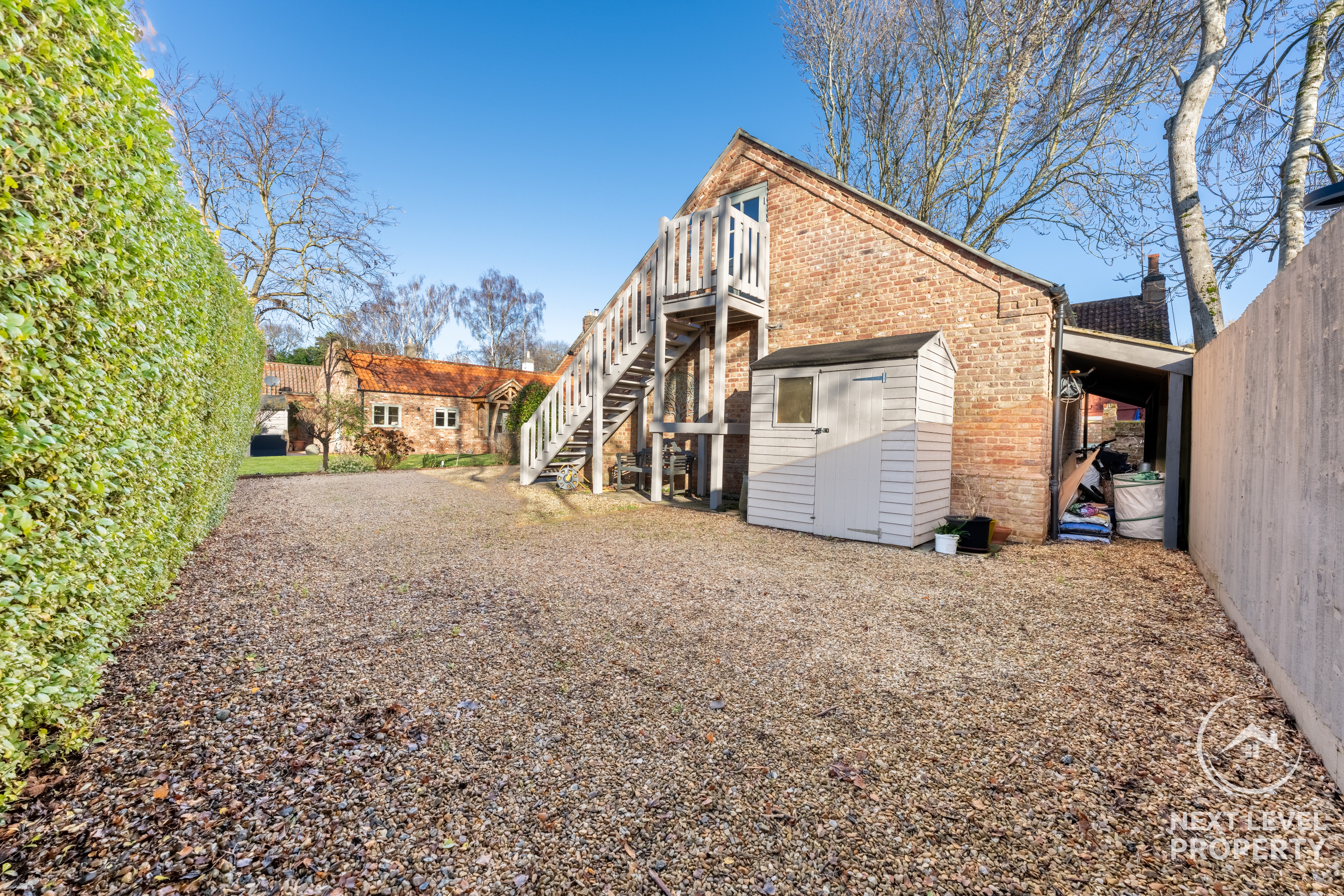 - Versatile Outbuildings, Ideal for Modern Living A well-equipped gym, single garage with water supply and an impressive 22' office above — perfect for home working or conversion potential (STP).