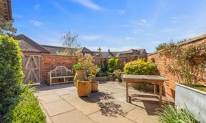 Externally, the property continues to impress. A delightful south-facing courtyard garden provides a private and tranquil setting, beautifully enclosed and enhanced by raised planted beds—perfect for outdoor dining and entertaining. The garage has been cleverly converted to offer a highly versatile space, including a gym, storage/entrance area and wet room on the ground floor, with a home office and fourth bedroom above.