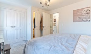 The first floor features a generously proportioned lounge, offering a welcoming living space enhanced by a Juliet balcony and a charming fireplace—an ideal spot for relaxing with family or guests. Also on this level is the third bedroom, a light-filled and spacious double room with neutral décor.