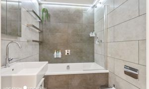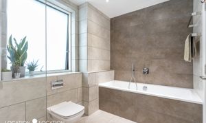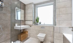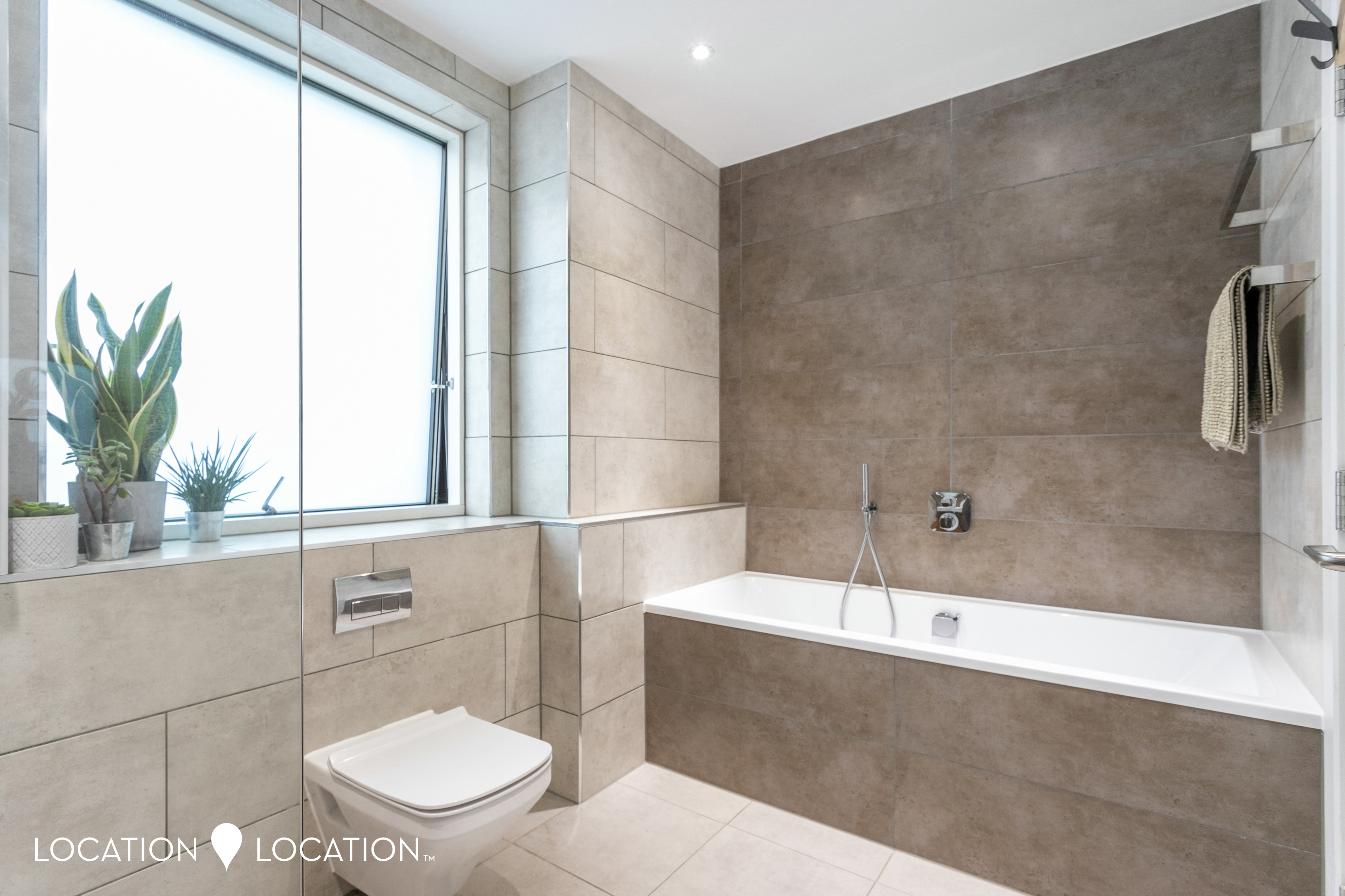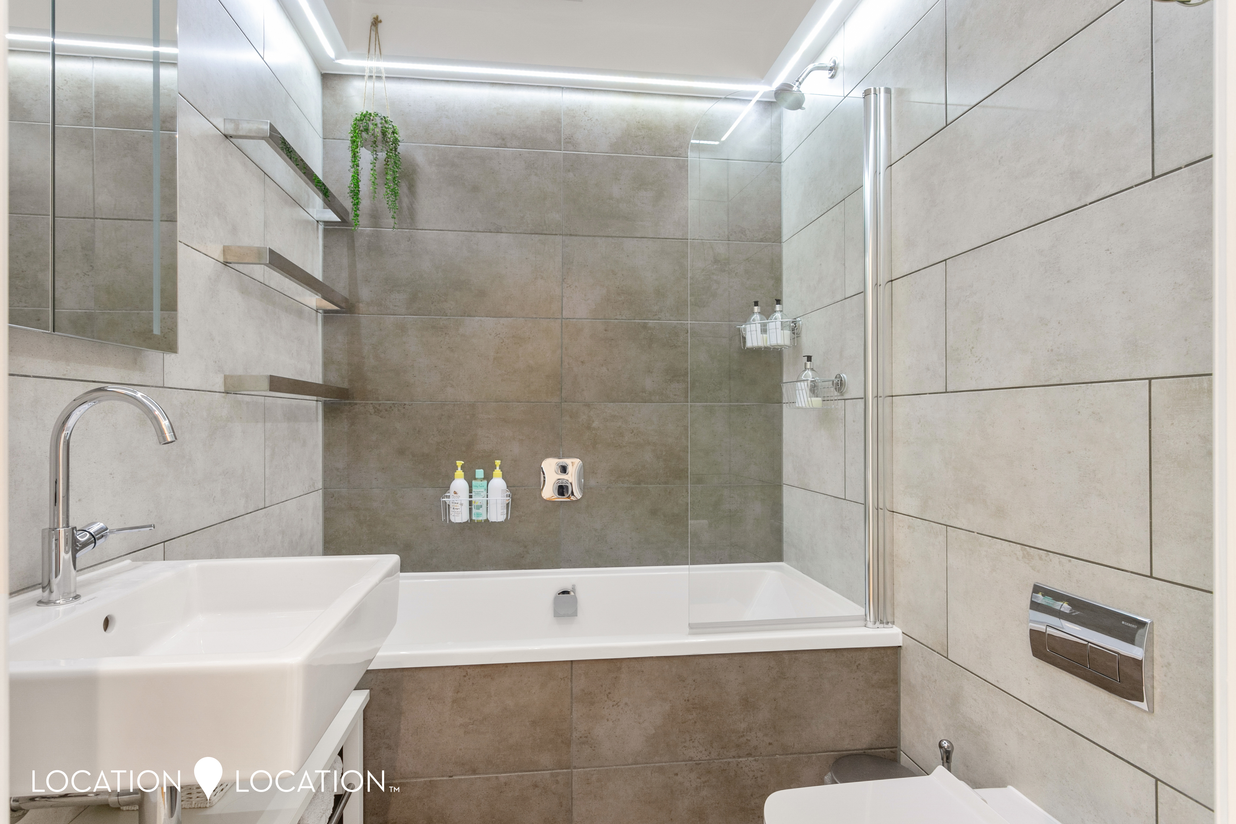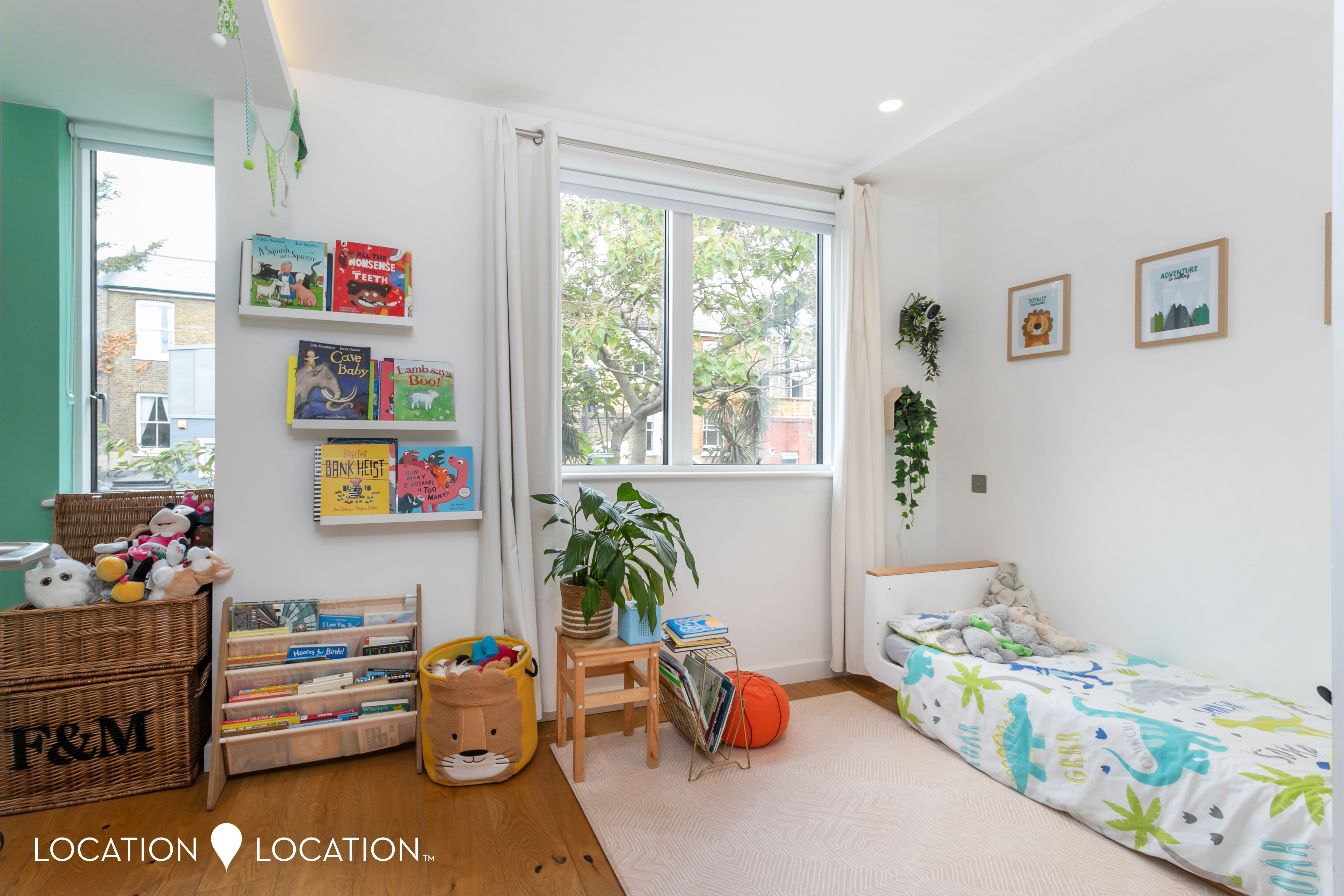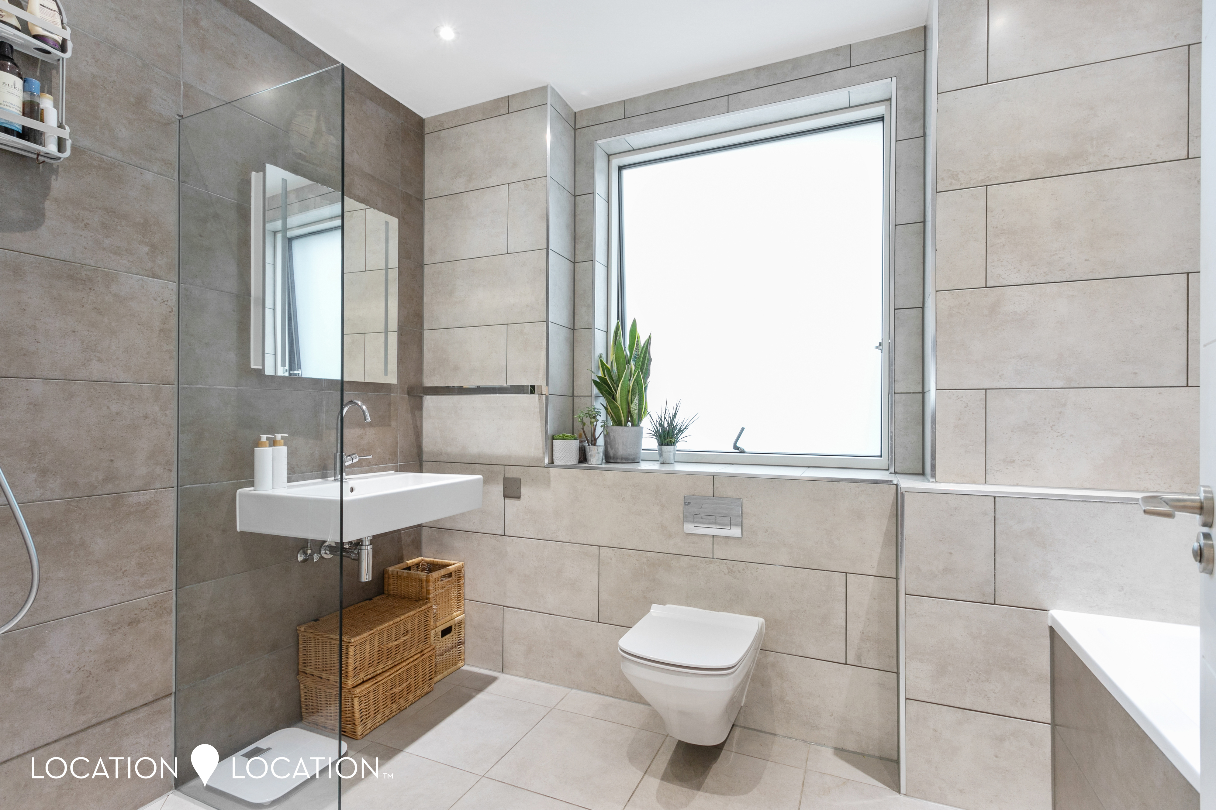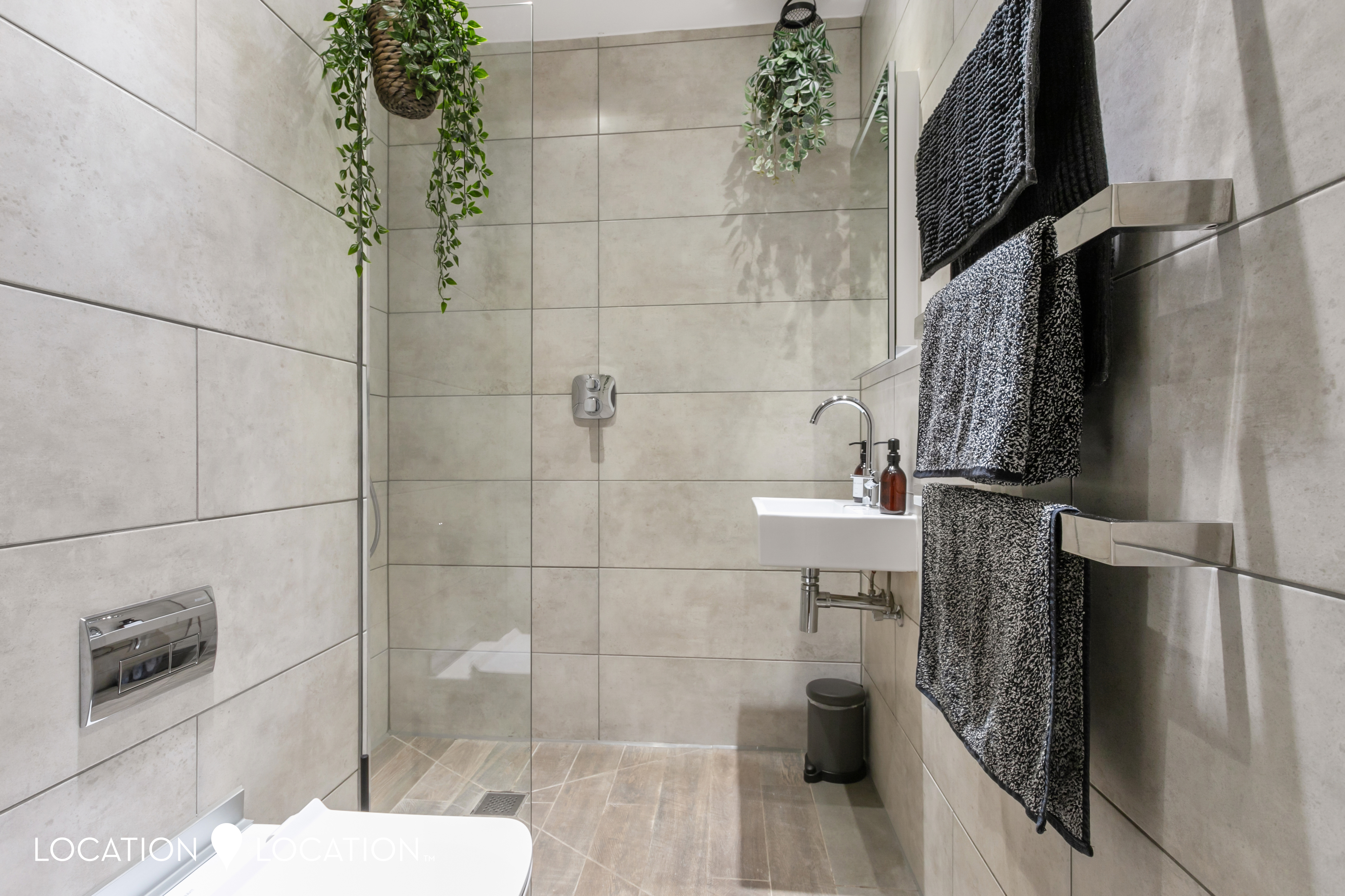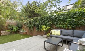 Comprising of a spacious open plan lounge with fully integrated kitchen, complete with breakfast bar. This then leads onto the private garden, semi decked, plenty of natural light and surrounded by leafy views making this a quiet oasis in a vibrant location- together with generous side storage. There is also a ground floor bedroom and bathroom perfect for guests or as a study area.