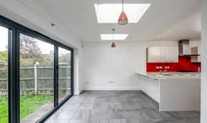 The key feature of this abode is the rear extension, providing an open plan Kitchen Family Room. This inviting space is illuminated by natural light flooding through the bi-fold doors that seamlessly connect the interior to the rear garden, creating a harmonious indoor-outdoor flow ideal for entertaining or relaxation.