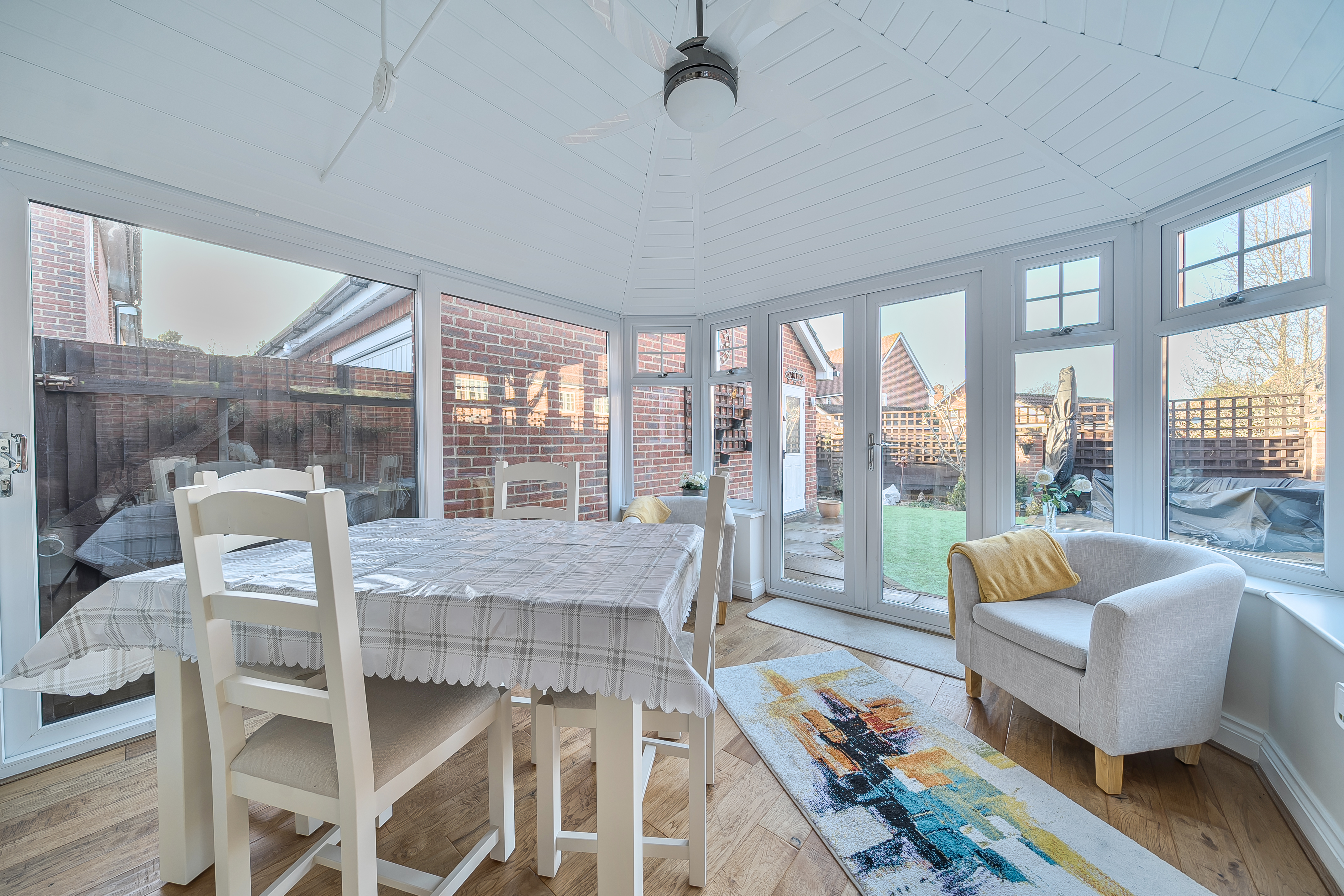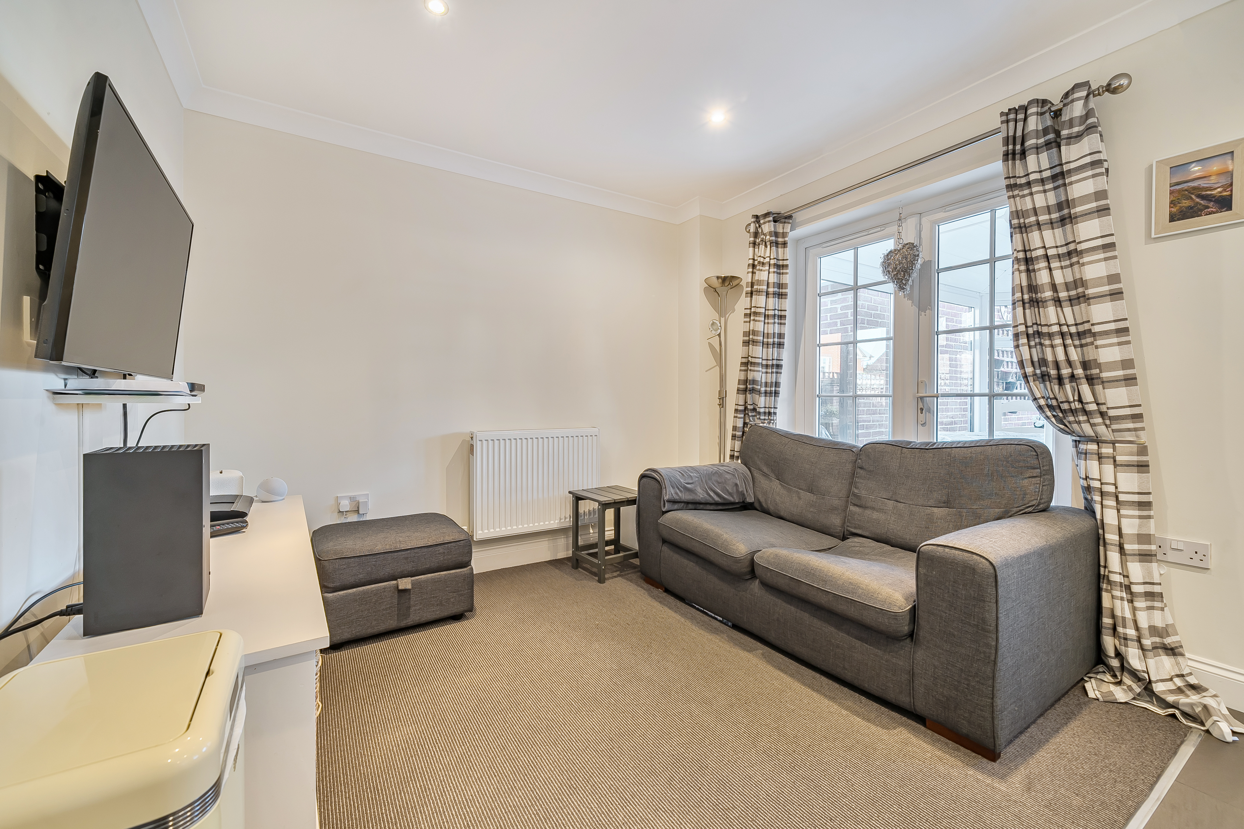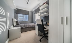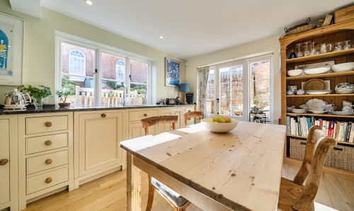 The well-appointed kitchen/dining room is fitted with integrated appliances and flows seamlessly into the garden room, which benefits from underfloor heating and enjoys views over the enclosed rear garden. An ideal area for both everyday living and entertaining.