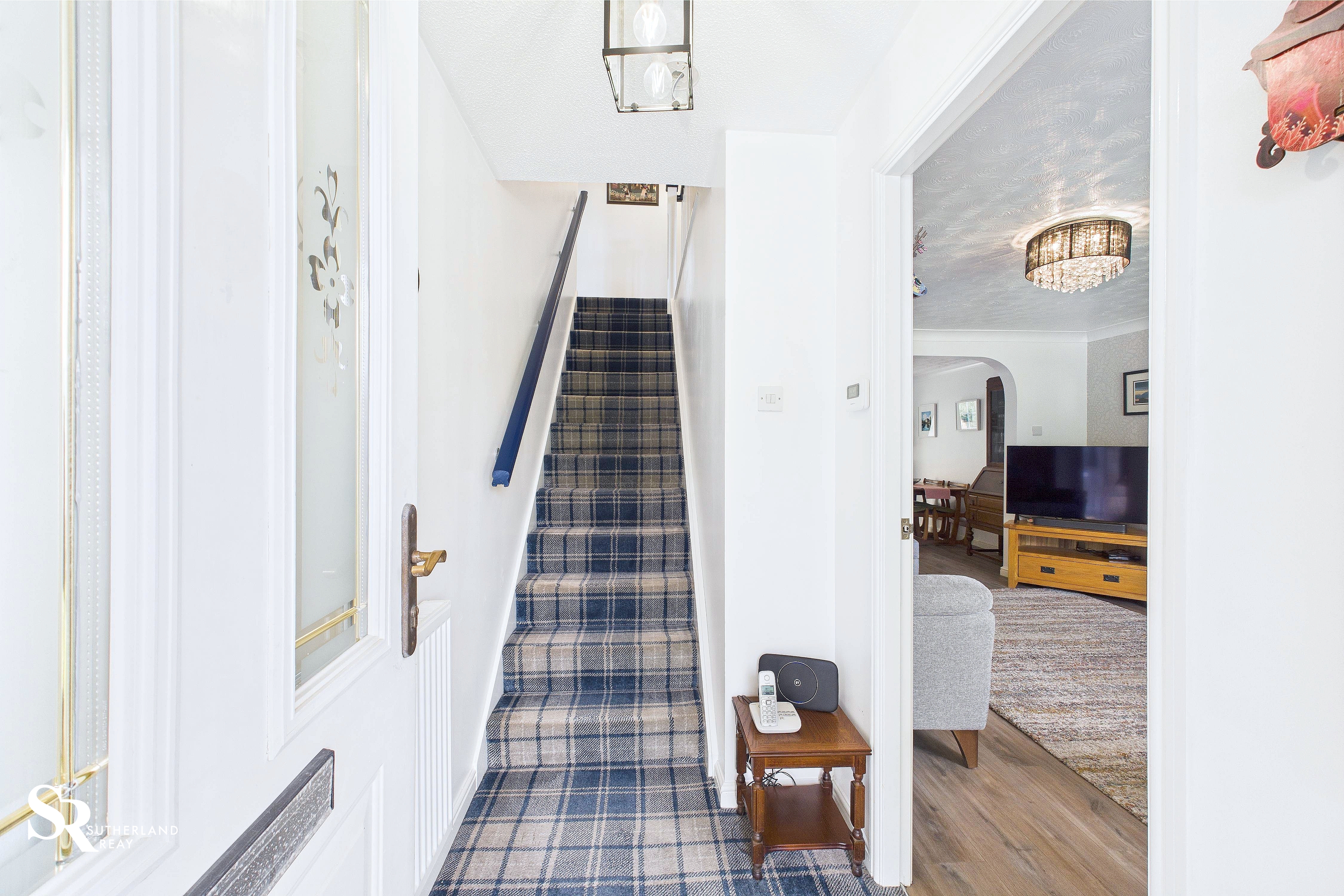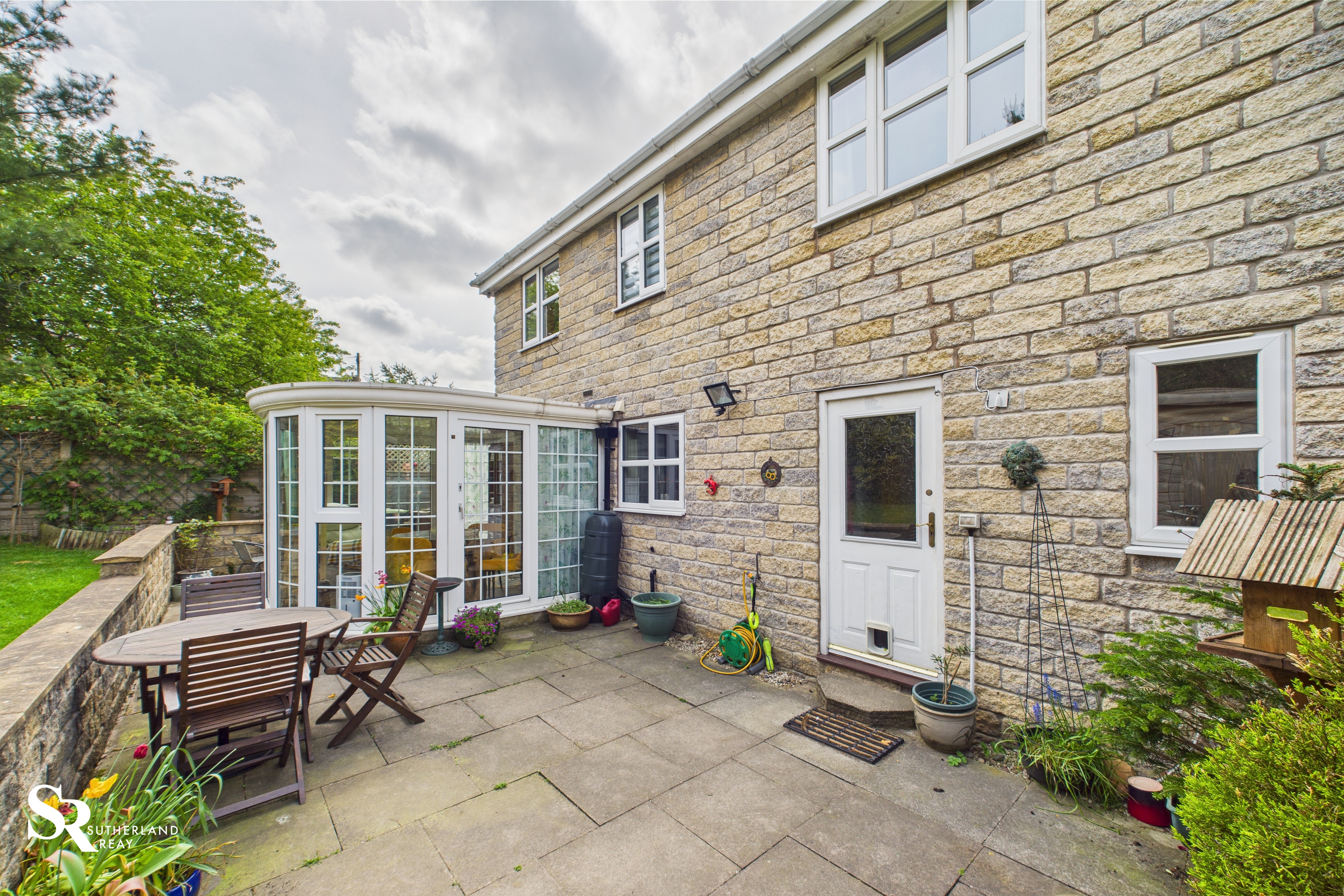Just outside the back door and conservatory, a charming paved patio area, bordered by a low-level retaining wall, provides an ideal spot for enjoying outdoor meals or simply soaking up the sunshine. A few steps lead up to the lawn garden, a lovely and secure enclosed space.