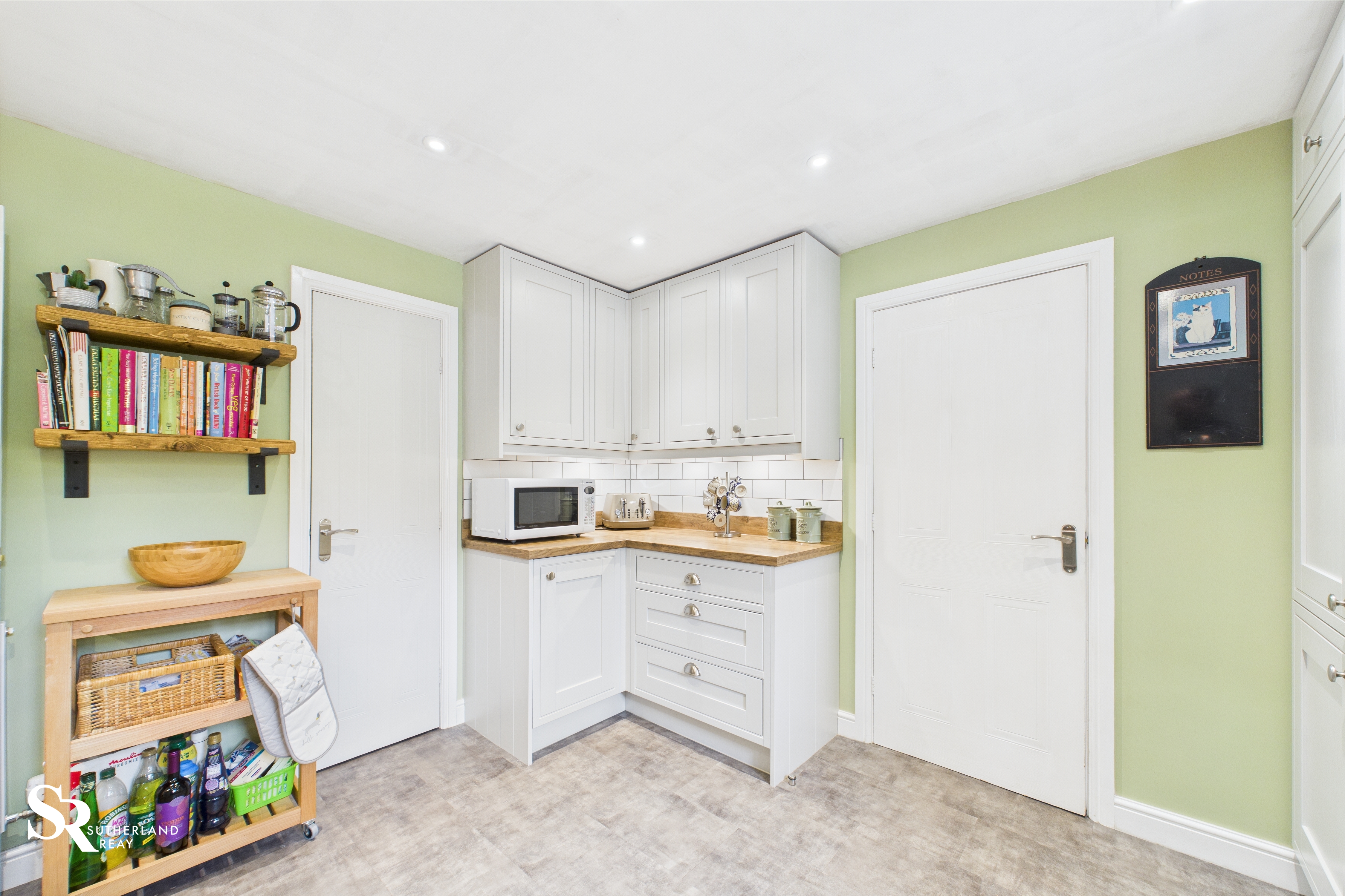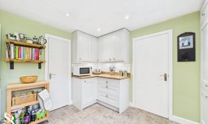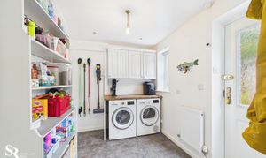 Conveniently located off the kitchen with stylish and durable luxury vinyl tile flooring. Features a rear aspect uPVC window and door with privacy glass, providing access to the garden. Practical worktop space with under-counter space for two appliances. The area gives access to a WC and directly into the garage.