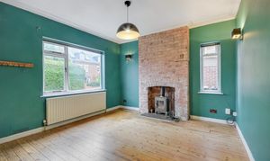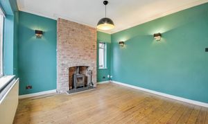 Good-sized living room with exposed floor boards, dual aspect windows for plenty of light and a wood-burning stove for cosy winter nights.