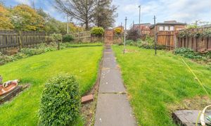 The property boasts a north-facing front garden with a slabbed driveway, offering convenient off-street parking and a low-maintenance entrance. To the rear and side, a wrap-around garden provides versatile outdoor space, perfect for gardening, relaxing, or family activities. Additionally, a private courtyard accessed via the kitchen/diner creates an ideal setting for outdoor dining, entertaining, or enjoying some quiet time in a secluded area.