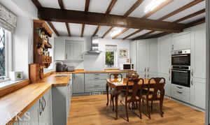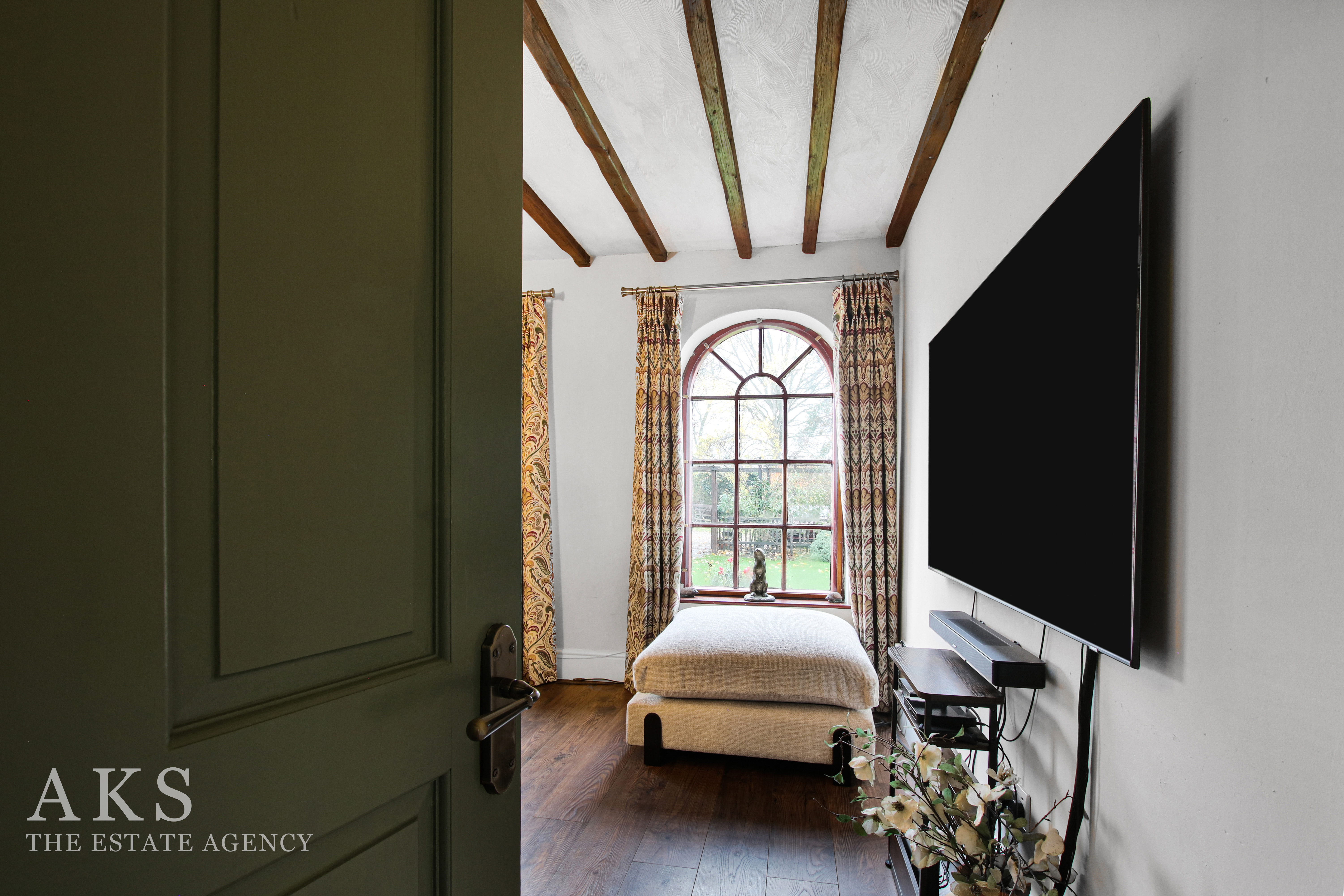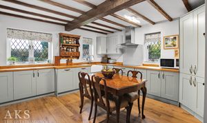 For me, the modernised kitchen‑diner is a real highlight. The modernised kitchen units are still in keeping with the period of the home, while the windows either side ensure the room is flooded with natural light. There’s plenty of space for a large dining table, and I can really picture family mealtimes here. From the kitchen, you move into the formal dining room, which feels like the perfect place to entertain guests, before retiring to the lounge. The lounge is such a comfortable space, and I can imagine sitting back and relaxing while enjoying the countryside views. There’s also another reception room that’s so versatile, it could easily be a home office, playroom, or snug.