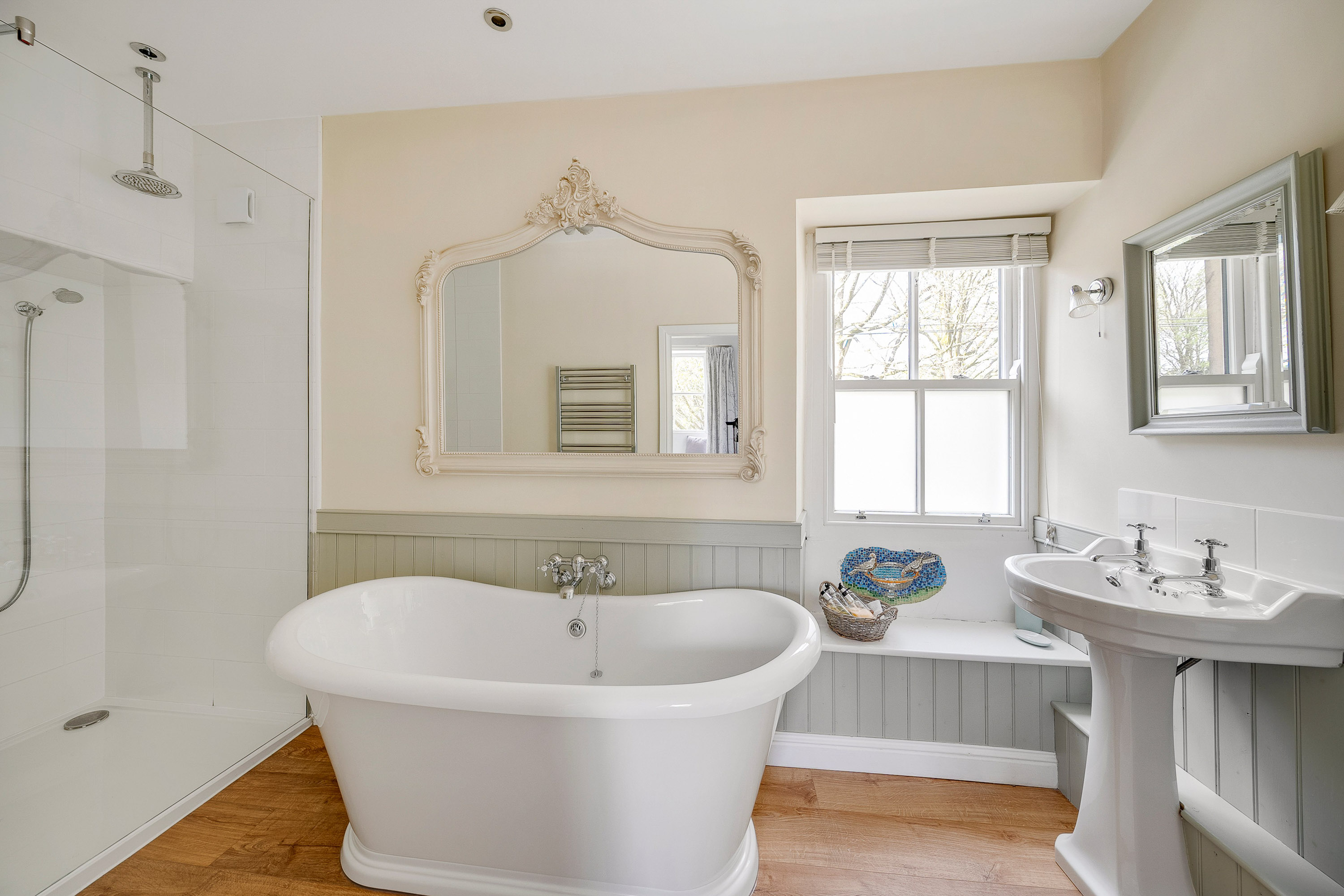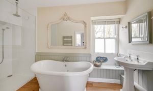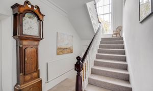 Leading up the impressive staircase which is flooded with natural light through the feature arched window, the first floor reveals three well-proportioned double bedrooms, with one having a stylish en-suite bathroom, and a house bathroom. The fourth bedroom can be accessed through one of the bedrooms or alternatively via a separate staircase, and is served by by a ground floor shower room which is adjacent to the practical laundry room.