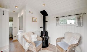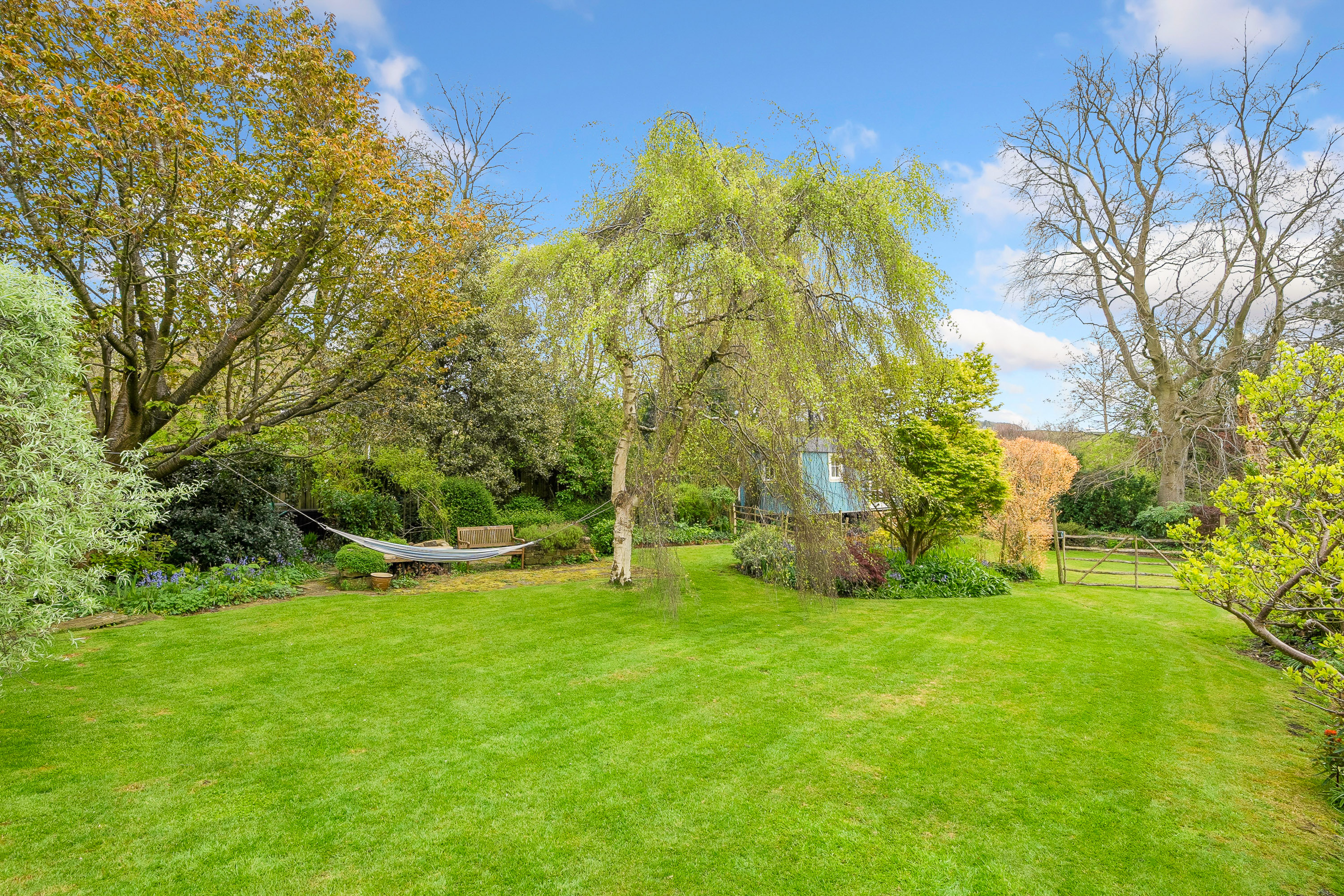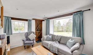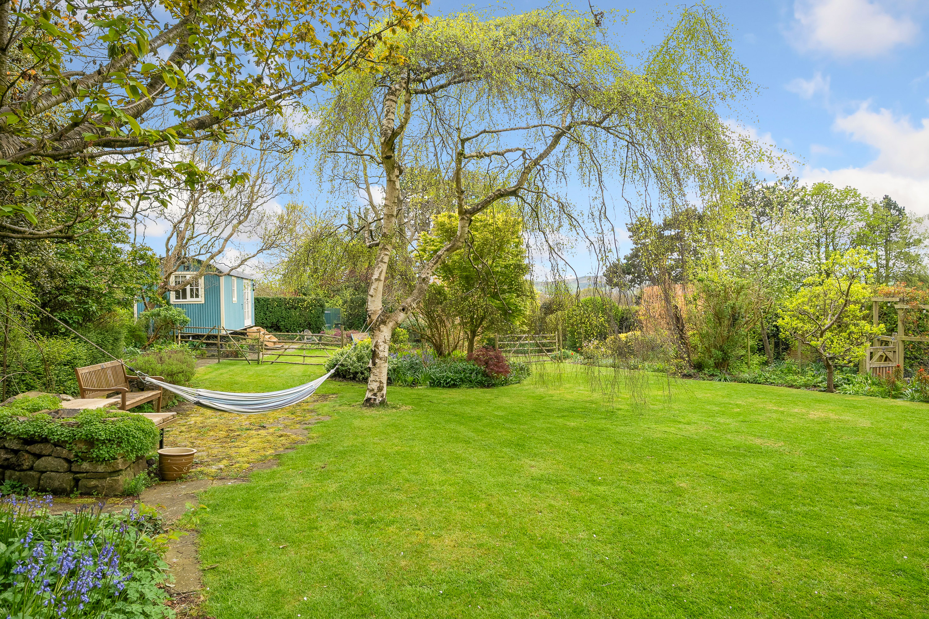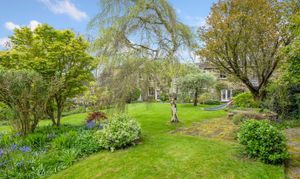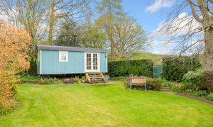Leading round to the rear of the property there is driveway parking for multiple vehicles with EV charger, along with two integral garages. The highly private south facing gardens are idyllic with extensive lawns flanked by mature trees and established shrubs, a sanctuary for those with children or pets. At the bottom of the garden the individually designed shepherds hut makes for a valuable addition to the overall property, ideal for use as guest accommodation being self contained and providing all the comfort anyone could wish for during their over night stay.
