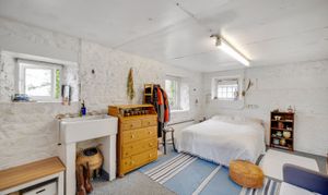 There are two single garages which can both be accessed internally from the house via the work shop and cellar, and adjoining the garage there is a separately accessed studio with w/c, which could again be used as a home office if required.